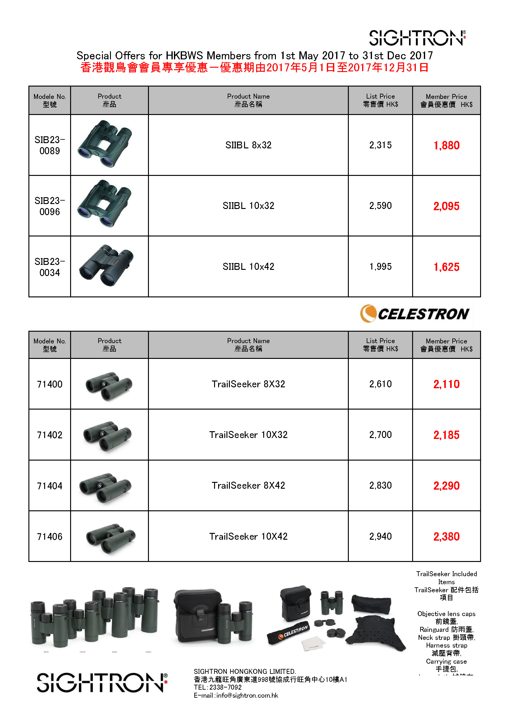 Special Offer of SIGHTRON / CELESTRON Binoculars ~ May to Dec 2017