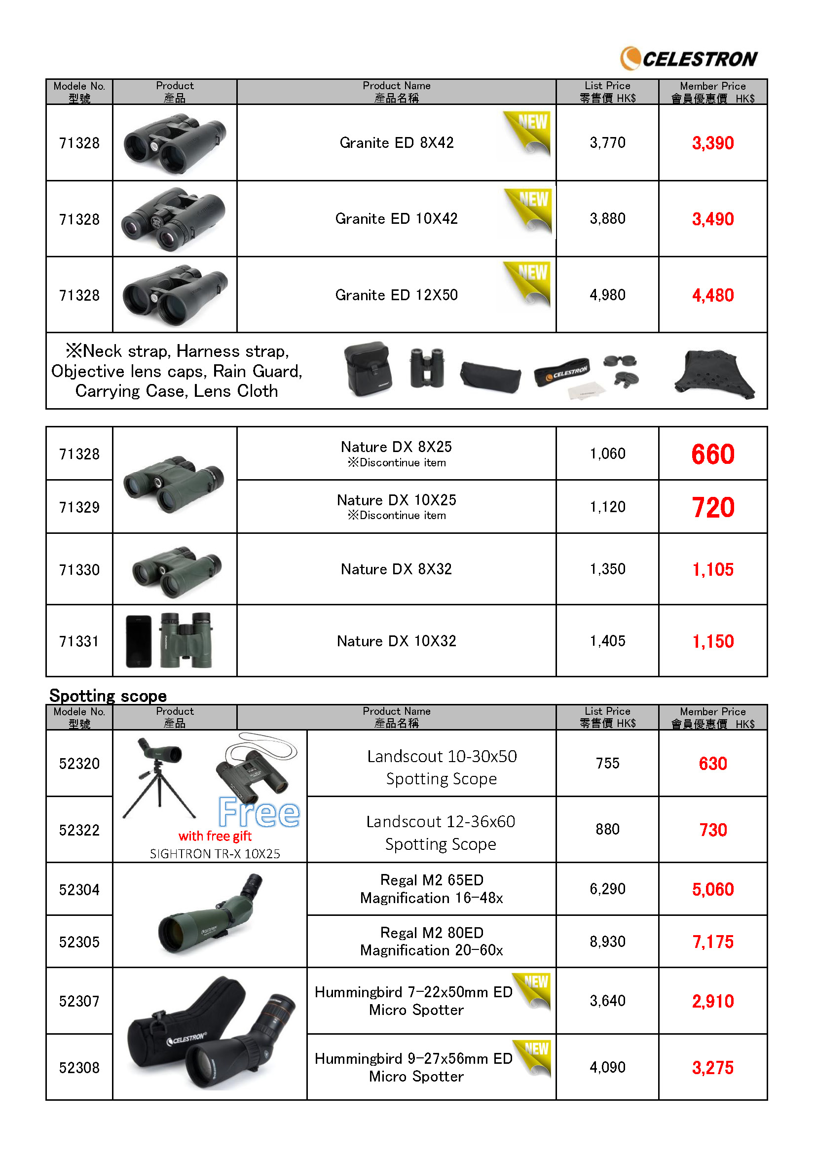 SIGHTRON / CELESTRON 望遠鏡優惠 ~ 2017年5月 至12月
