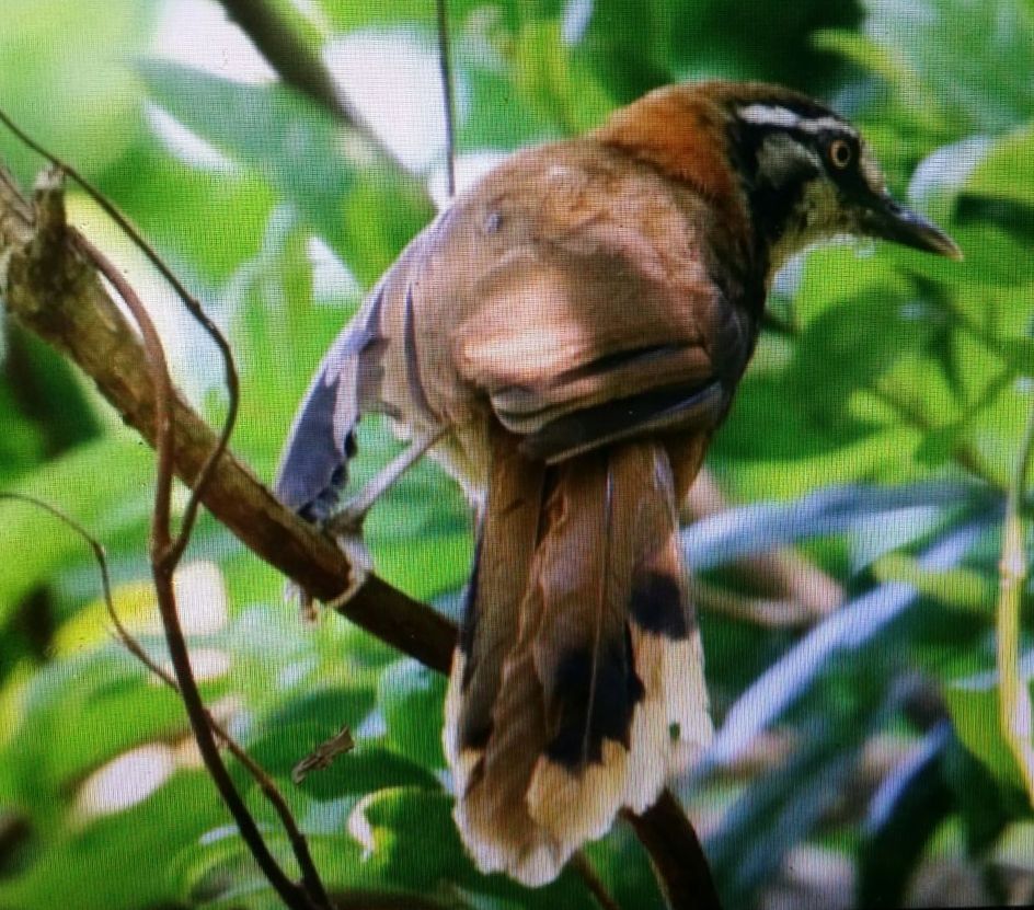 Greater Necklaced Laughingthrush (ringed), a released/escaped bird
