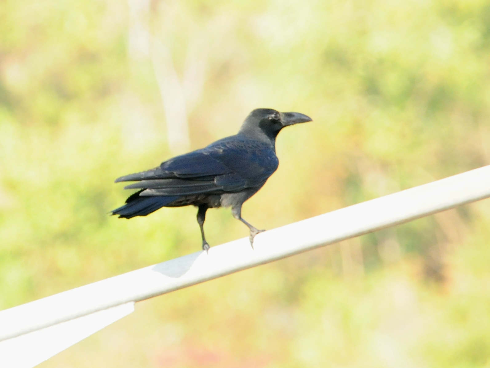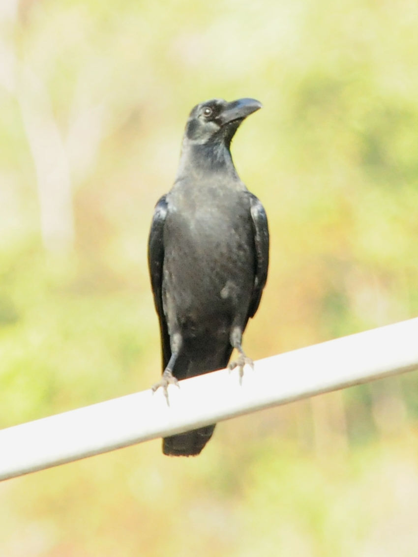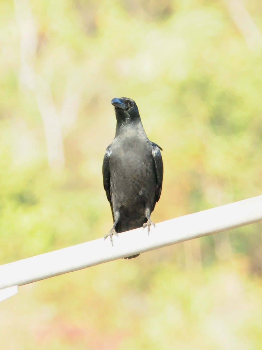 I think this is a Large-billed Crow, perhaps a worn immature bird or perhaps catching the light in a certain way so that some feathers look paler than normal.