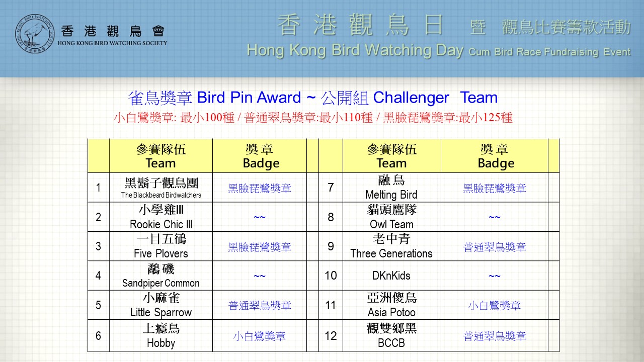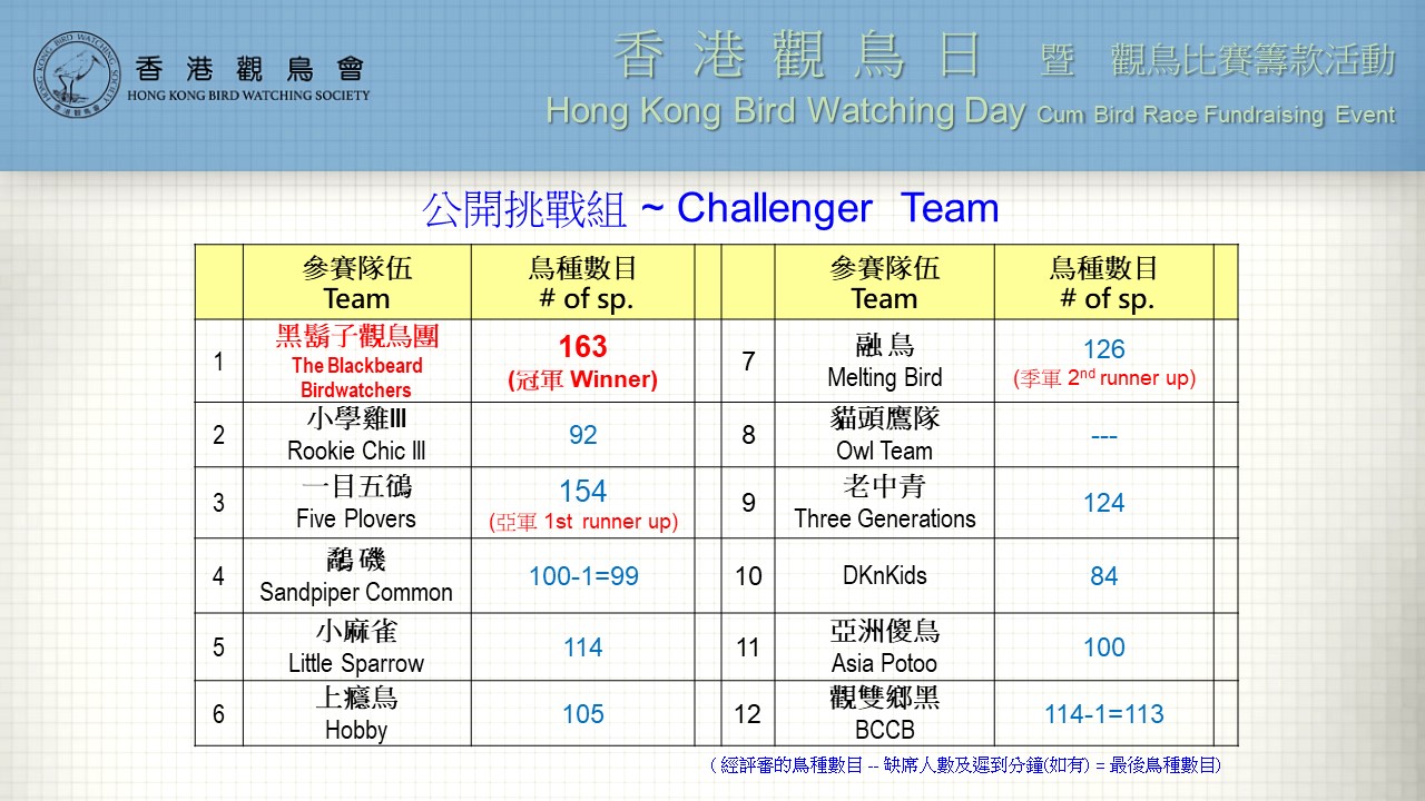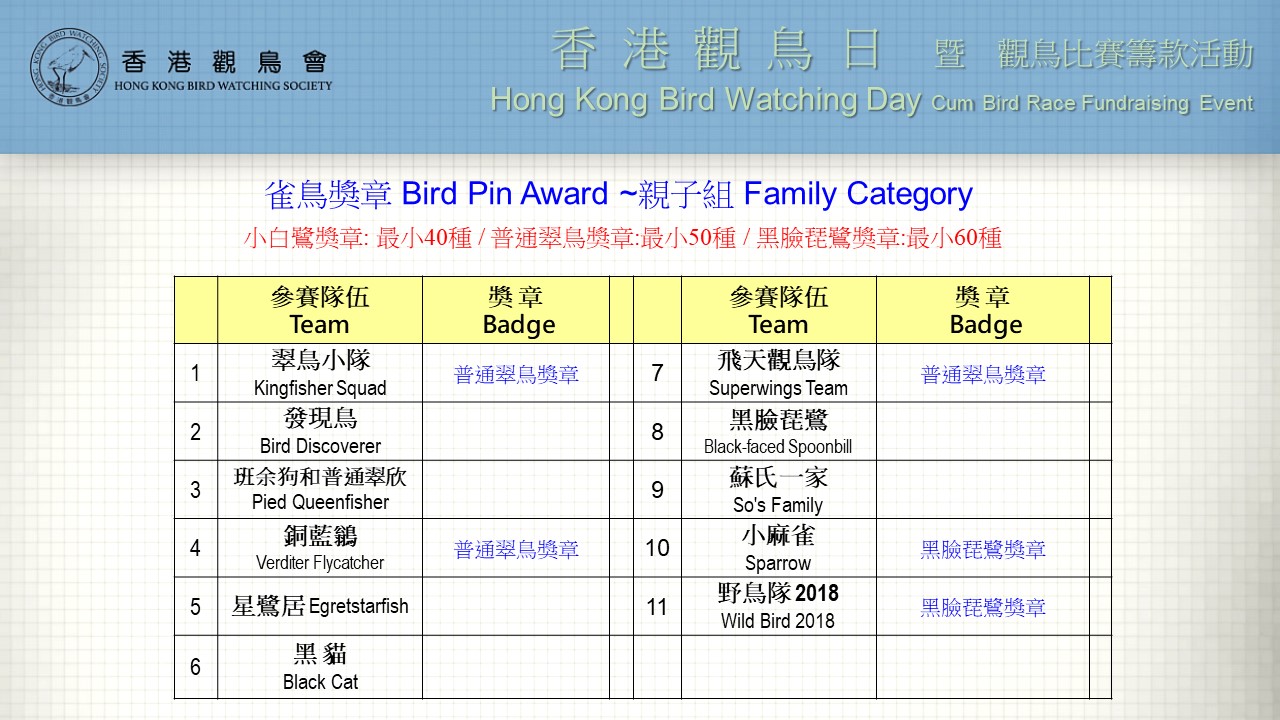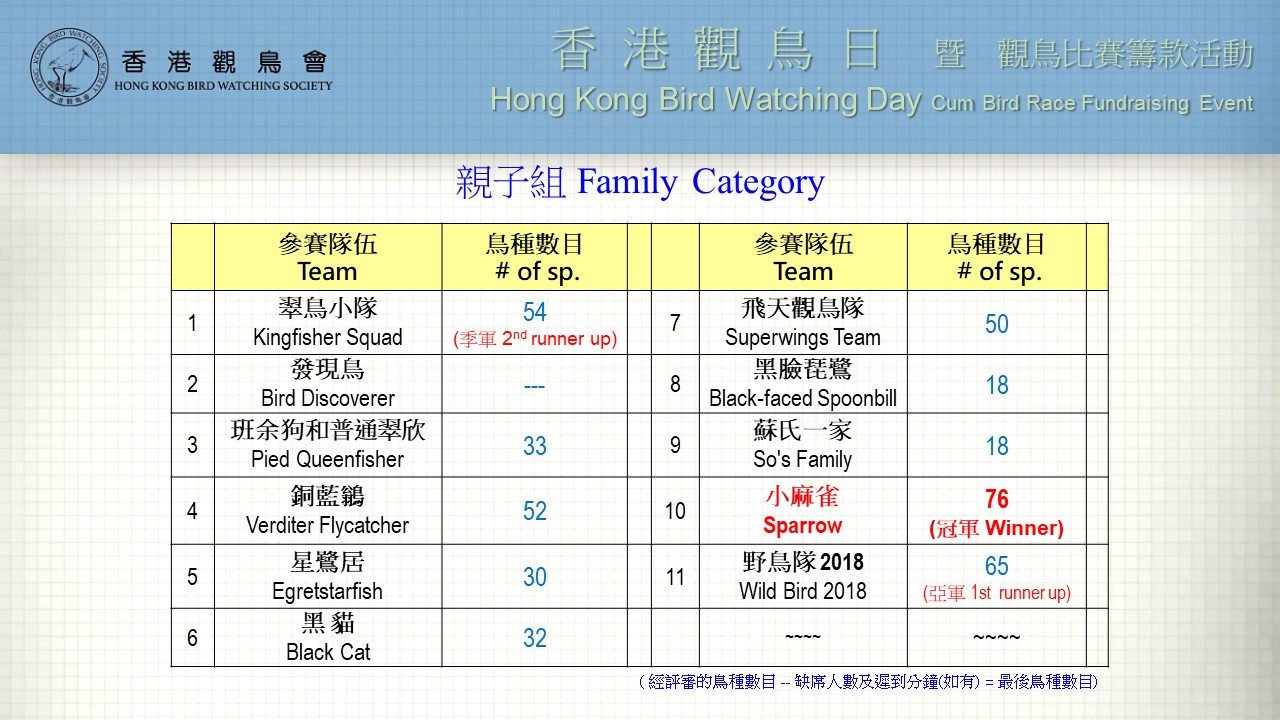 2018 香 港 觀 鳥 日 暨 觀鳥比賽籌款活動 Hong Kong Bird Watching Day Cum Bird Race Fundraising Event