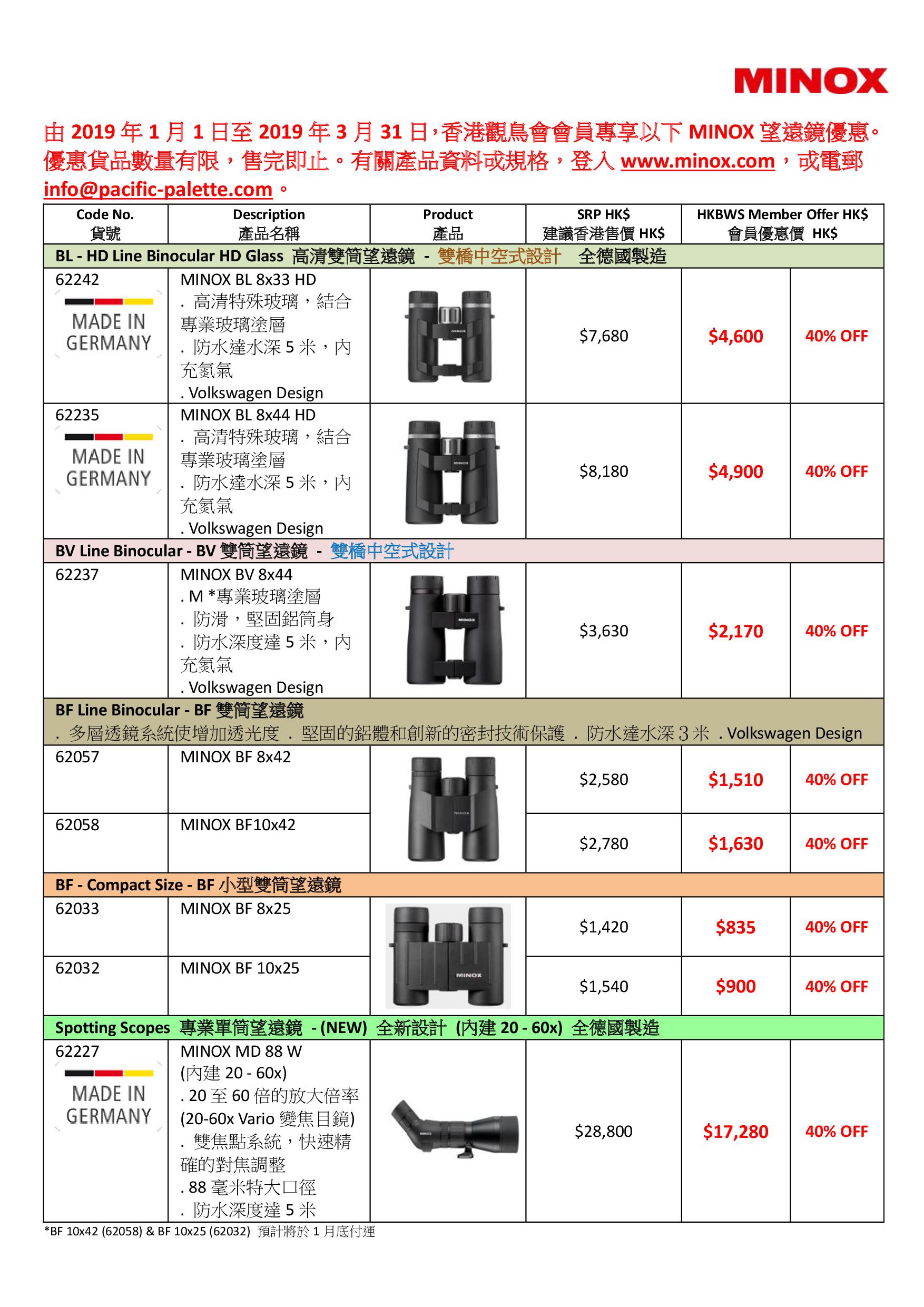 MINOX望遠鏡優惠 ~ 2019年 1月 至 3月 Special Offer of MINOX Binoculars ~ Jan to Mar 2019