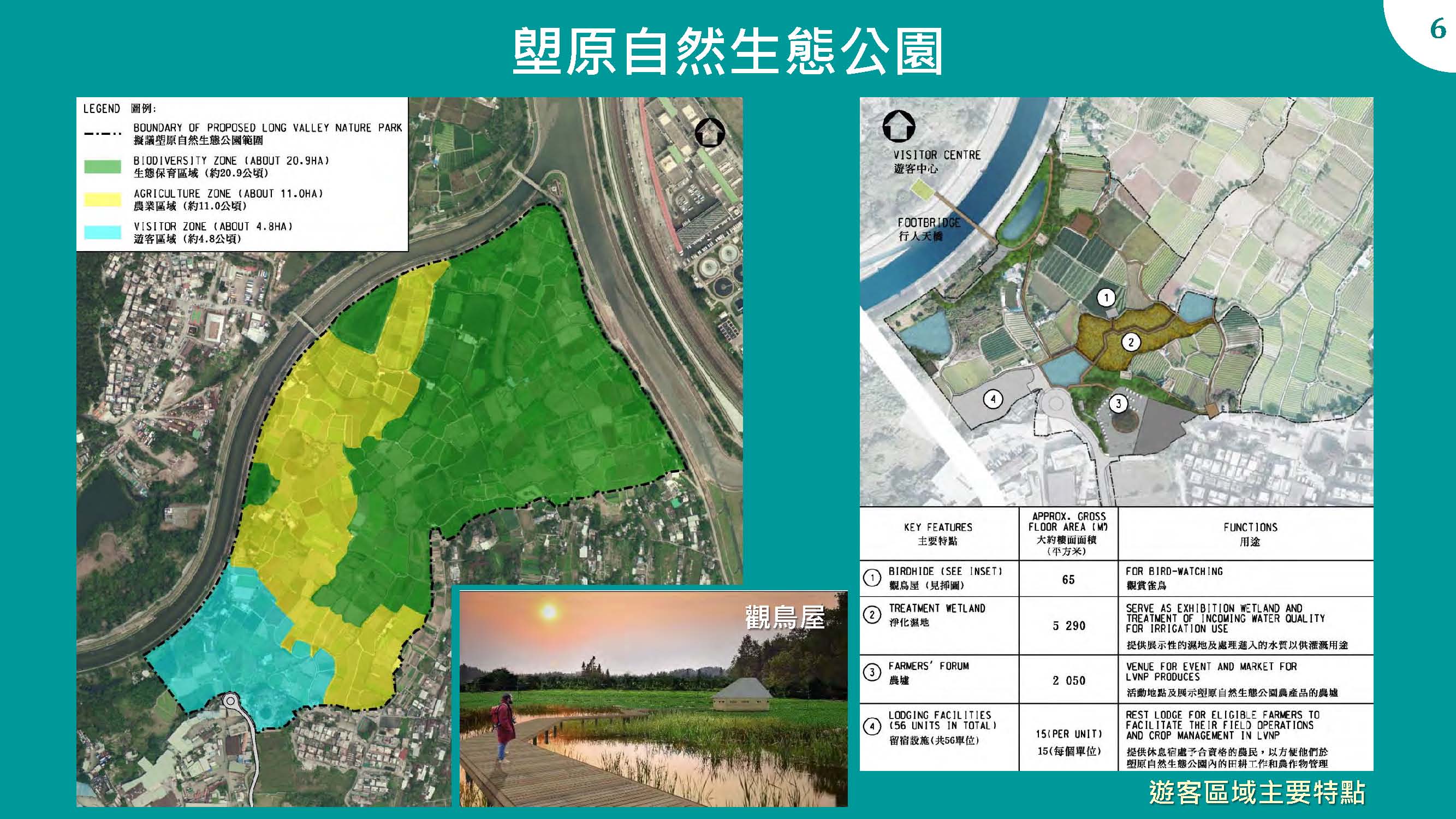 According to the paper submitted by the Development Bureau to Panel on Development of the Legislative Council (LegCo) early this year, the 37-hectare LVNP will be divided into three zones: Visitor Zone (about 4.8 hectares), Eco-agriculture Zone (about 11 hectares) and Conservation Zone (about 20.9 hectares)[2]. Eco-friendly agriculture will be practiced in Eco-agriculture Zone and Conservation Zone in order to conserve the agricultural characteristics and ecological value of Long Valley.