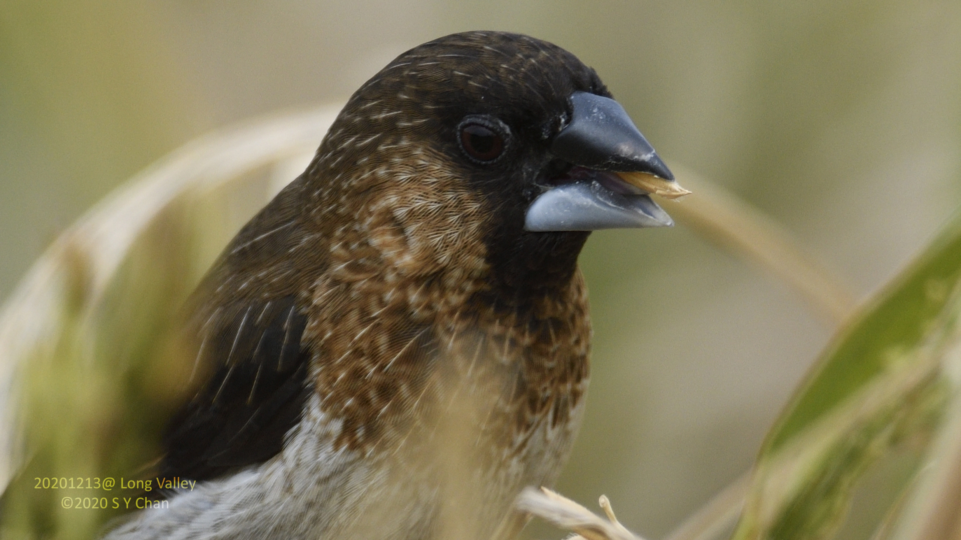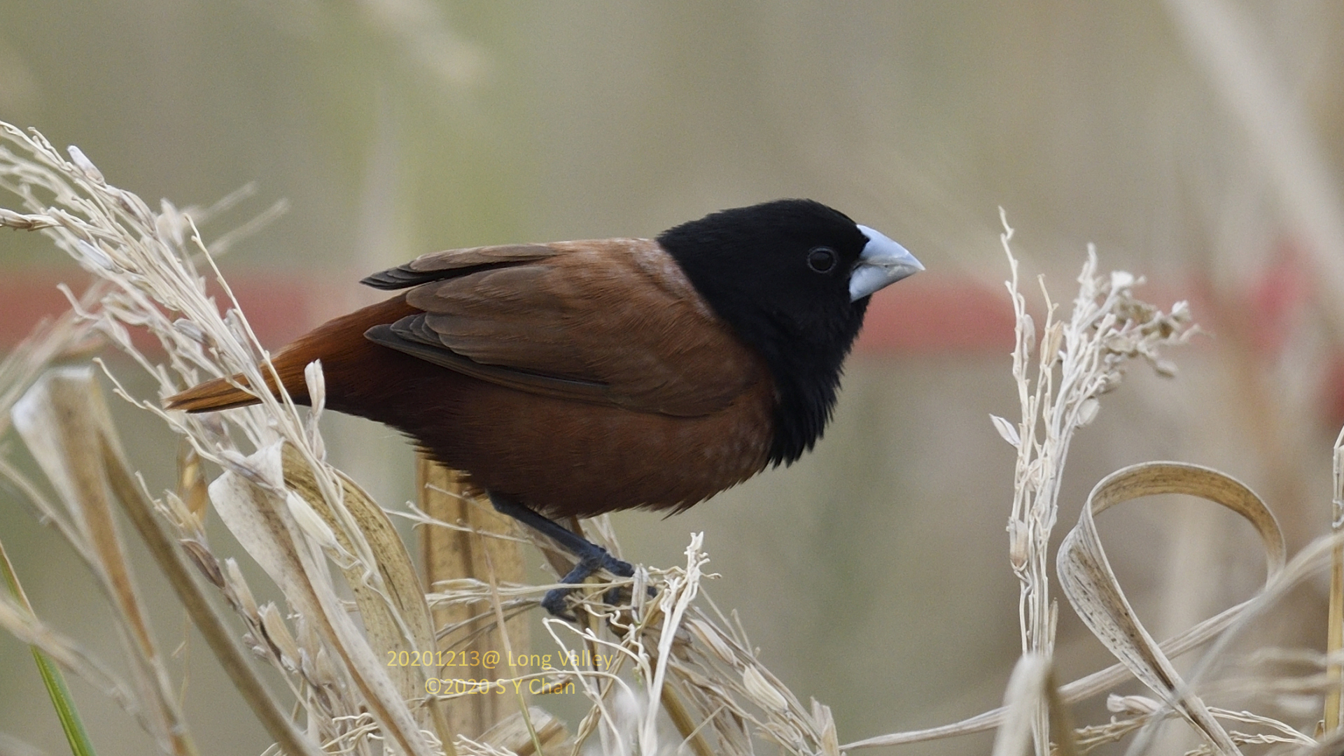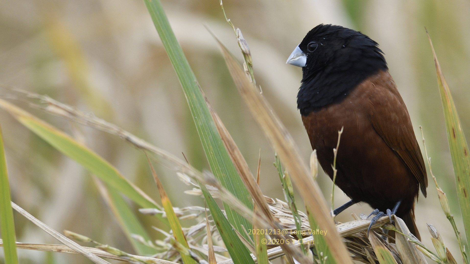The ones shown in my photos should be Lonchura atricapilla, chestnut munia 黑頭文鳥 and not 栗腹文鳥.