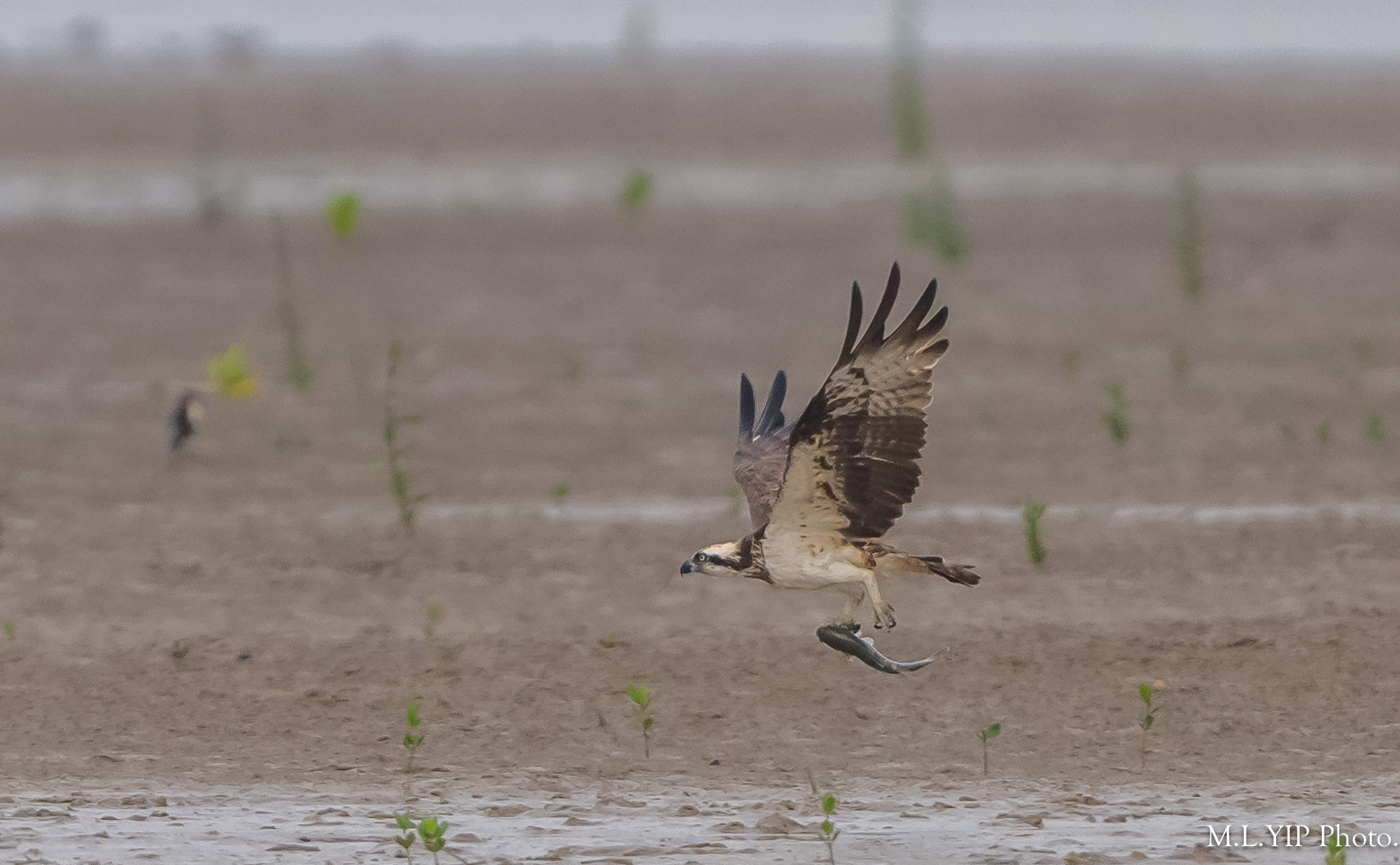 今次佢又有收穫啦,不過就似乎冇位開餐,在泥灘上飛來飛去.