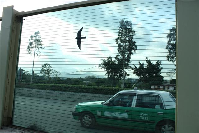 Consequently, surfaces that appear to be solid only at close range (for example, where a pattern such as hatching is not visible at longer range) may still cause significant mortality. I have noticed this hatched pattern on noise barriers along the Tolo Highway near Tai Po, where it is being upgraded. Fortunately, the area generally is so highly urbanised, it is unlikely to be a serious issue.