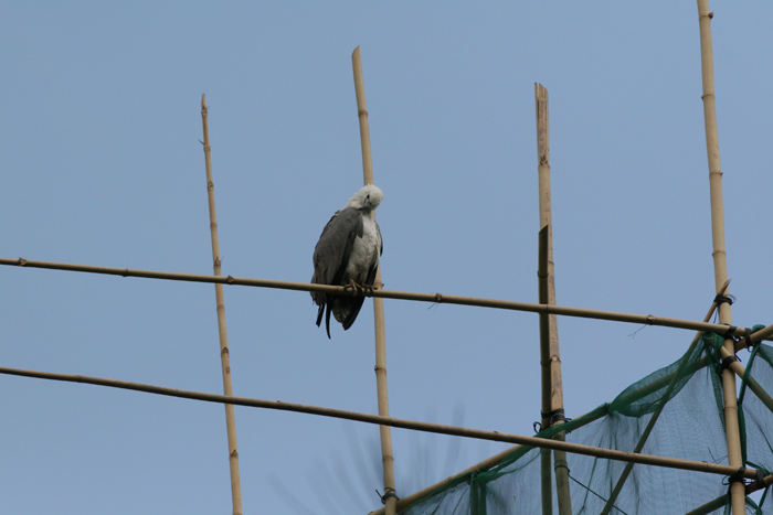 Regardless a white-bellied sea eagle is standing up on the Sai Kung mountain, perching on bamboo scaffolding in Wanchai, even being captured in the cage of Kadoorie Farm, it always carries the flair of "King of Sea Bird in Hong Kong".  How amazing.................