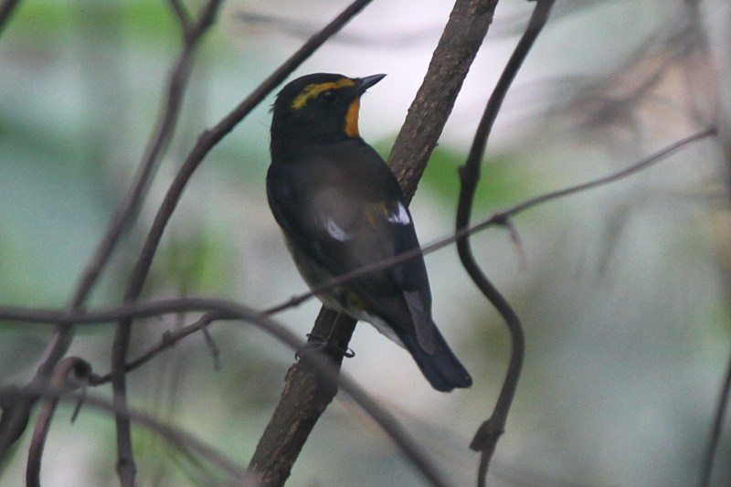 For the first time since slope work started I walked the concrete trail at the top of Po Shan Road. The trail has been significantly enlarged and much of the underbrush on side facing the buildings has been cleared while the underbrush on the peak side remains. Large trees remain and I believe they may be better now for Flycatcher and just as I was thinking that the Narcissus flew into one of those trees. On the down side, it may cut down on some of the more dense forest species I have seen here such as Brown-chested Jungle Flycatcher and Siberian Blue Robin. The other annoying thing is that a chain link fence has been erected along the trail on the building side so you need to look out through the fence to see birds. I don't see much need for this fence since there isn't really any danger of falling off of the trail. This area however is definitely worth a look if there aren't too many workmen making a clamour.