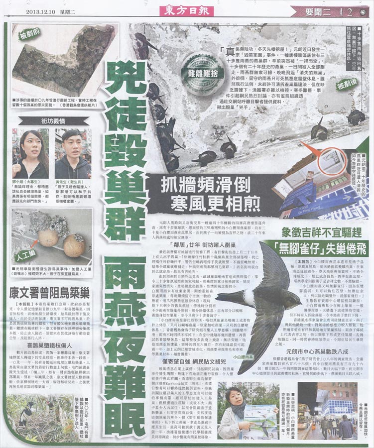 兇徒毀巢群 雨燕夜難眠