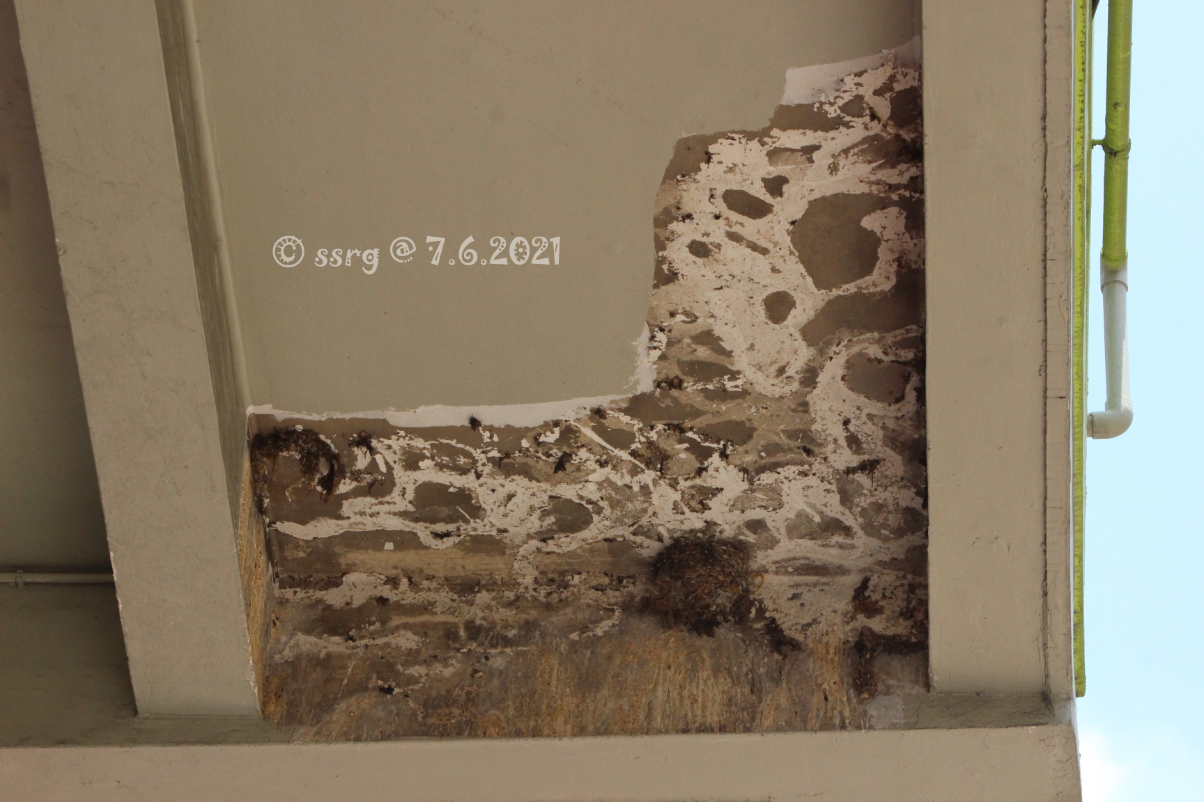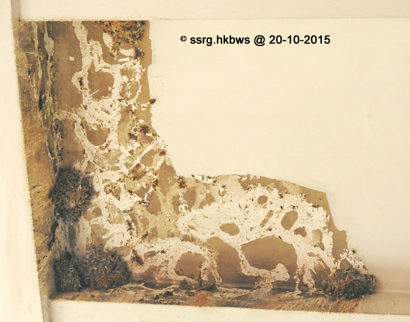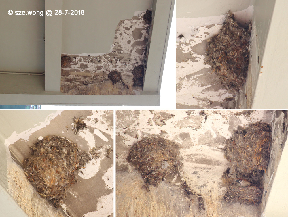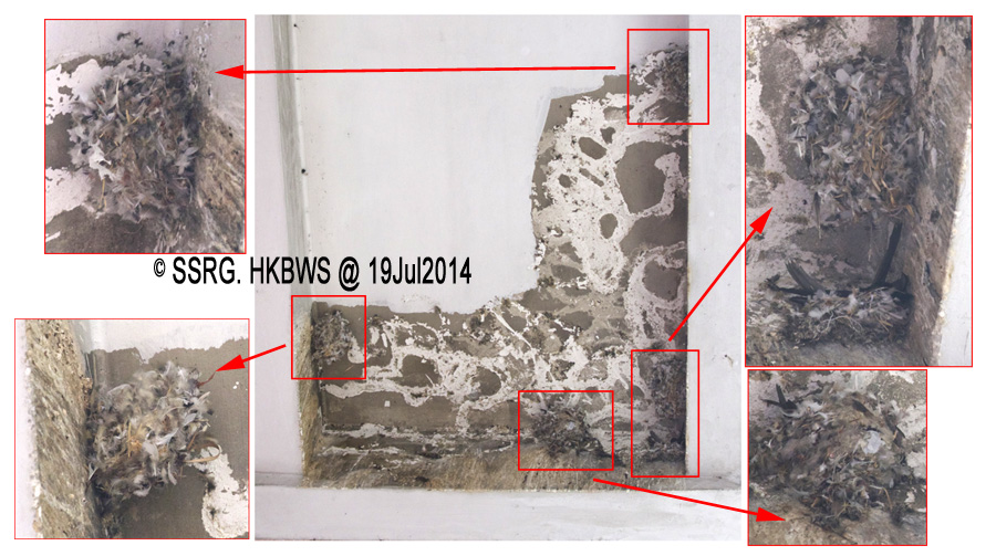 最近該唐樓有地舖進行裝修工程,有目擊街坊指上月二十日早上有人出手毀巢。「佢哋攞住竹枝將十幾個燕巢全部掃落嚟,我已經喝住叫佢哋停手,警告佢哋再唔停手我就報警,不過佢哋無理,結果全部巢就咁剷走,仲搞到成街都係羽毛巢碎。」該名街坊說由於已成定局,故未有再追究。