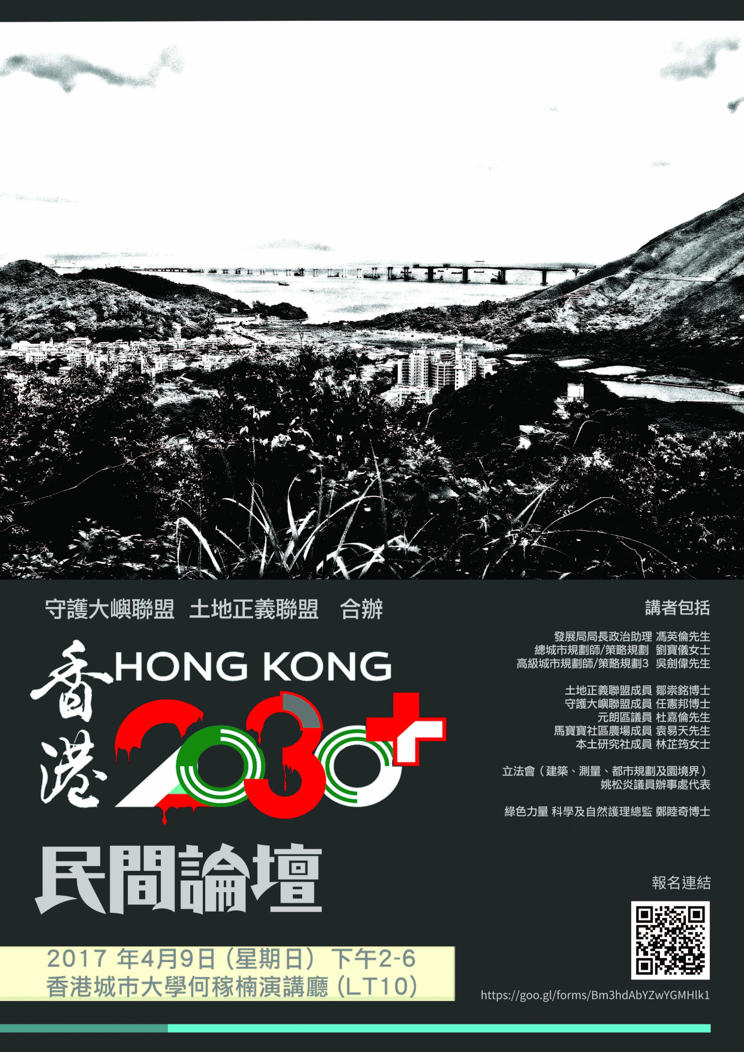 Feel free to join the following public forum on 9 April about Hong Kong 2030+ organized by Save Lantau Alliance and Land Justice League. If you are interested, please register as limited seats are available.