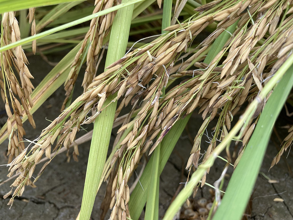 最後,塱原河上鄉管理計劃傳來壞消息。6月連日暴雨令河上鄉的米田出現「倒伏」情況,經過長春社和香港觀鳥會同事搶救後,情況一度好轉。可惜七月收米期間再遇上颱風及大雨,不僅打亂我們收米的進度,更催化未收割的稻米發芽(圖5),我們不得不忍痛放棄餘下未收的米,因此今年頭造米的產量只有往年約五分一。我們心痛但不心死,農友和同事已經積極準備下一造米,迎接回歸的禾花雀。