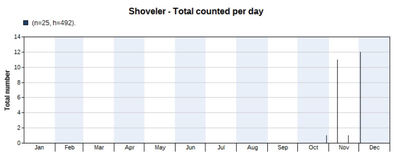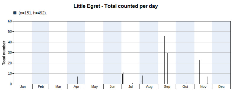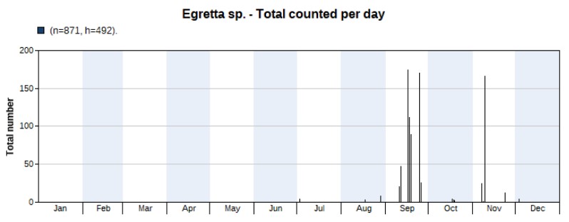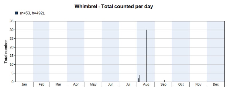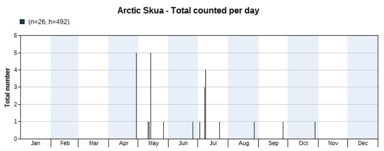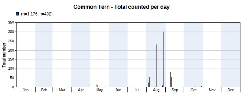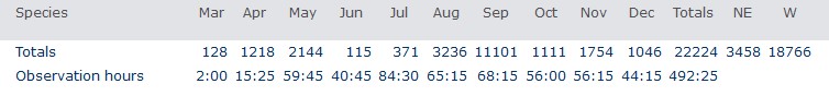 • The most birdy month by far was September, with 11,101 migrant birds counted. August is next, but with ‘only’ 3,236 birds counted. June was the quietest month, with just 115 birds counted.
