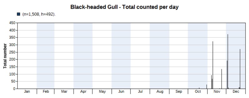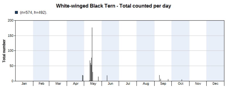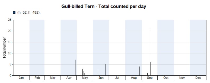 This is based on Trektellen, but “gull/tern spec.” cannot be reported on the site. It involves 130 individuals, which does bring the total count of all migrating birds to 22,354. Indeed all migrant birds, so besides the below list also raptors, passerines, swifts, swallows, etc.