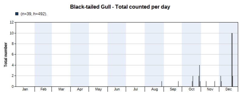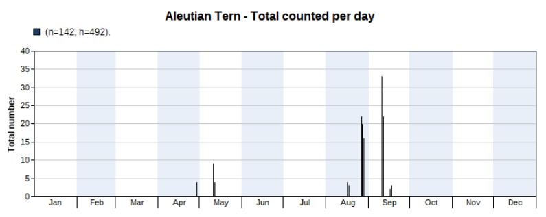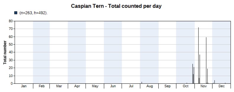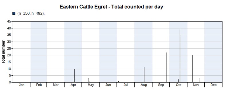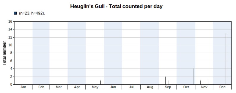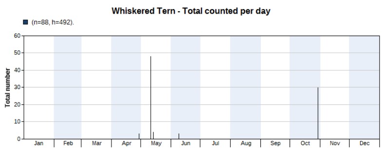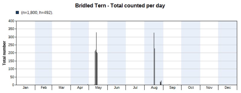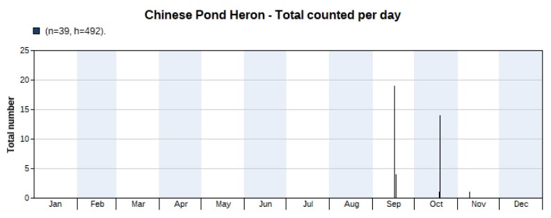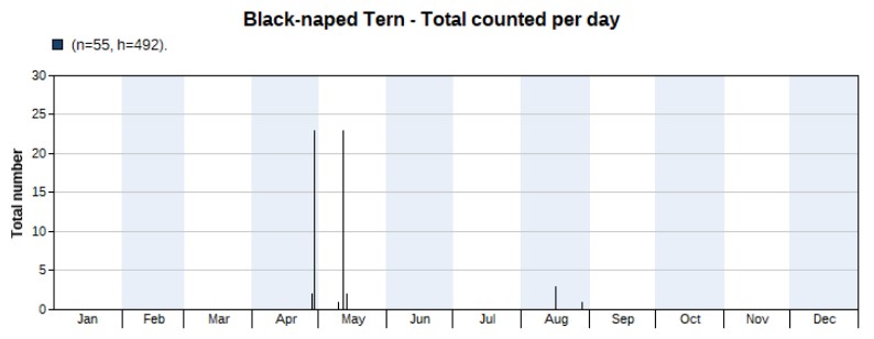 So, please keep in mind that this review is just about 2021 and that we started from the end of March, so data of the two first months and most of March is lacking. The list below is of seabirds and coastal migrants, mostly species for which Po Toi is a specifically good spot in Hong Kong. Also note that it is based on a few surveys per month, so the gaps on the graphs (from Trektellen.nl –