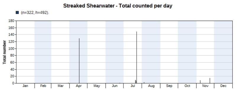 But the main point I want to draw attention to, is that good species or good numbers of birds were seen on days with no typhoons at all. That is actually excellent news: we don’t necessarily need a typhoon to see Swinhoe’ Storm Petrels, Bulwer’s Petrels, boobies, thousands of terns or record numbers of Streaked Shearwaters. Typhoons can produce excellent birds as well, of course, and maybe more and better ones than during other types of weather. And it is possible that after the typhoon has already passed, interesting stuff can still be seen. So, I don’t downplay the positive effect that a typhoon can have, but just want to emphasize that you can see great stuff without one as well.
