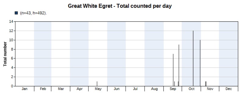 • We identified 69 migrating species during the year. A 70th species, Common Swift on 22 December, is still under consideration and has been submitted to the Records Committee.