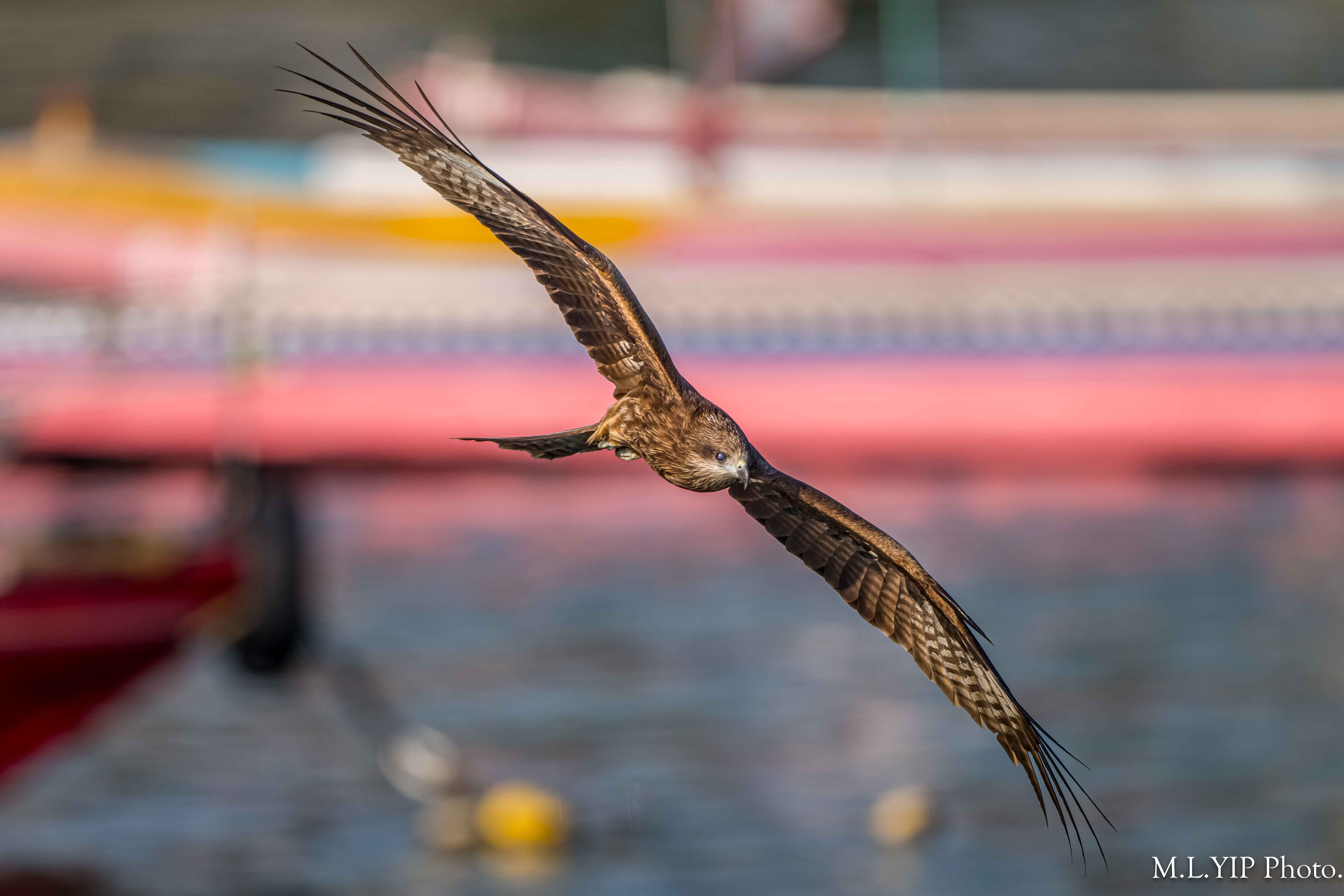 西貢碼頭的黑鳶,常貼近碼頭飛翔,貼地親民.
