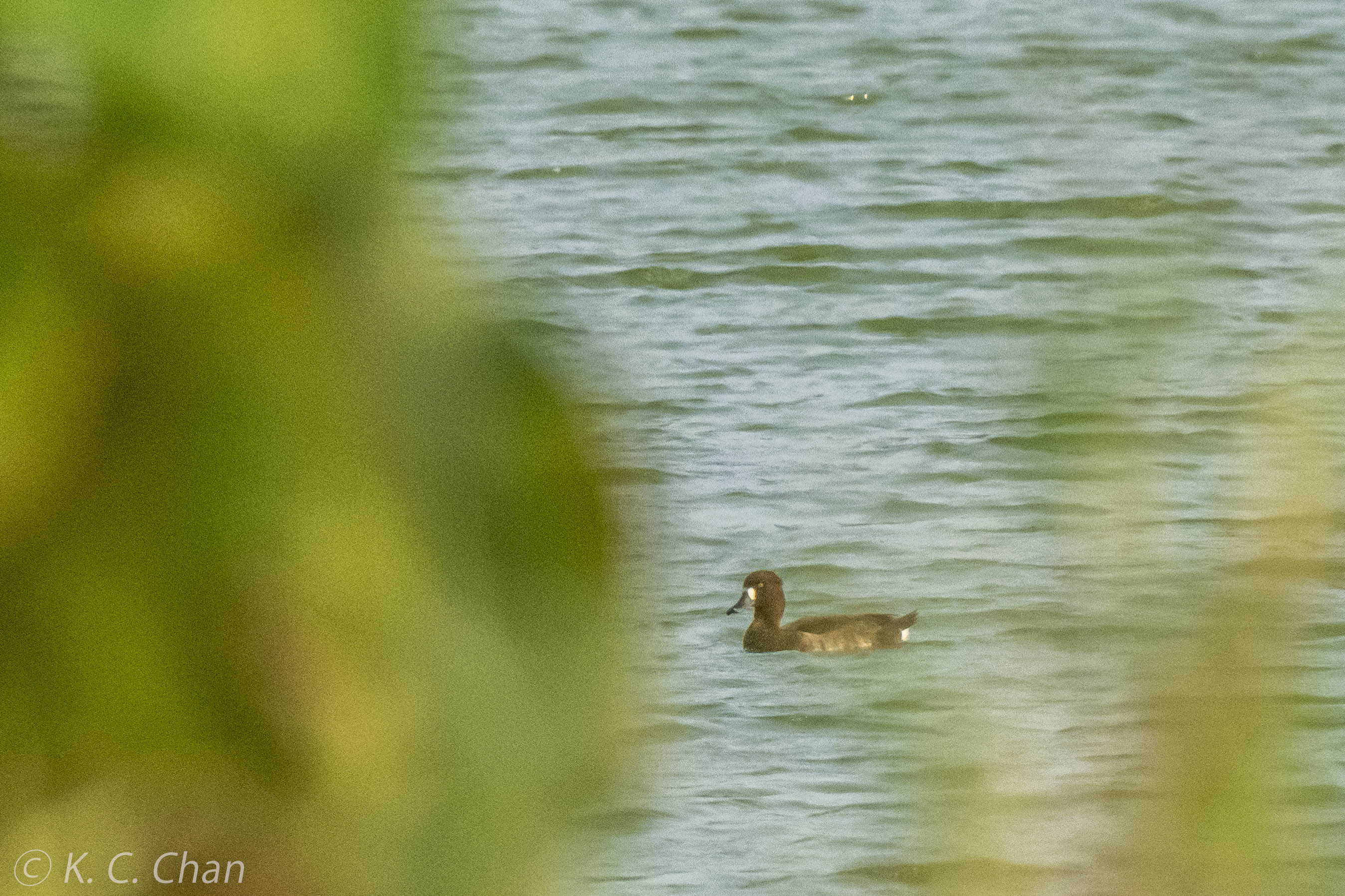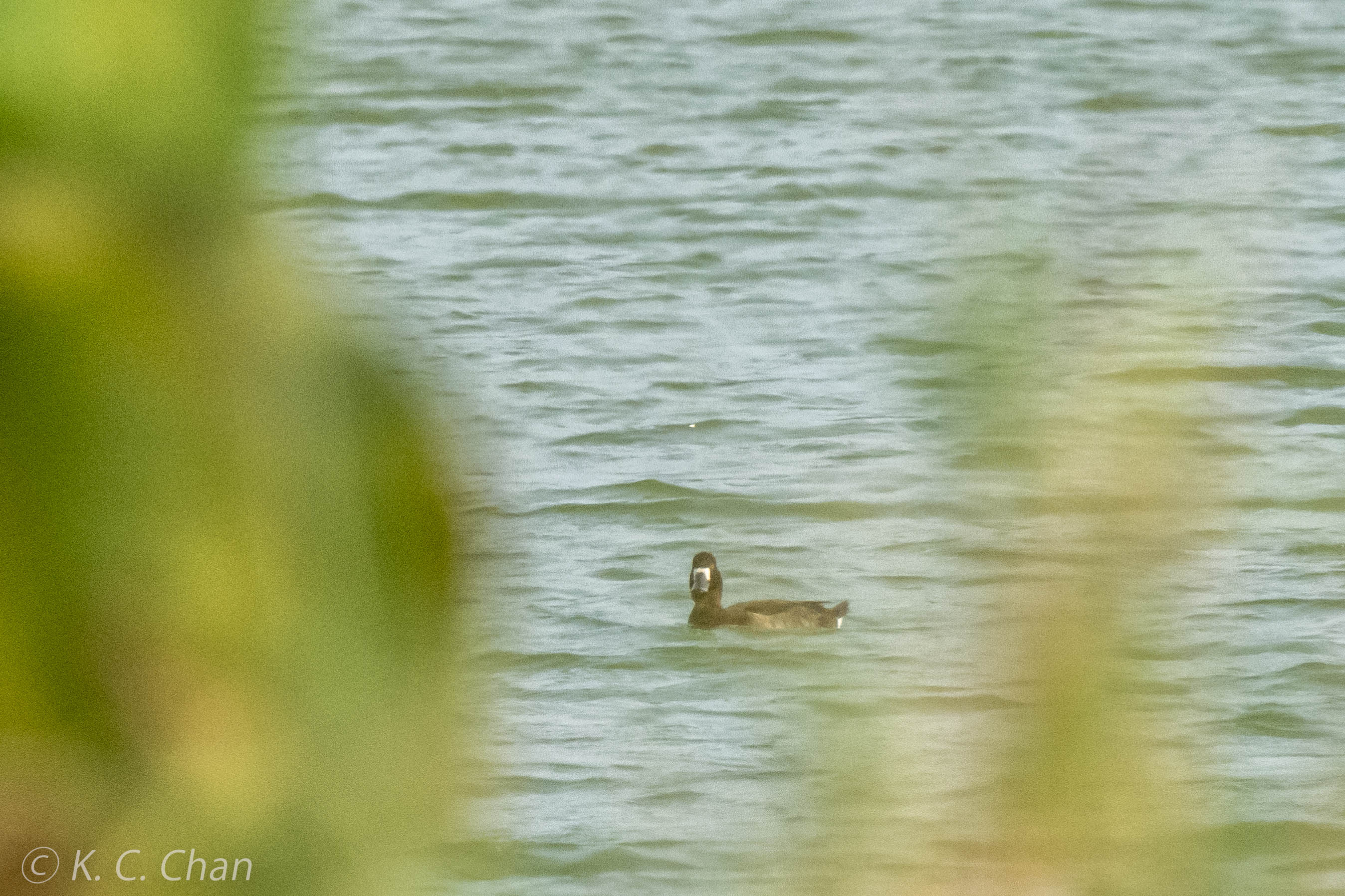 It's also a Tufted Duck in my opinion - head is not rounded like that of a Greater Scaup - it does have a 'tuft', and the bill is the wrong shape for that species. It's the same shape as the Tufteds in the shot and the eye colour is the same too. Female Tufted often showed quite extensive white around the bill.