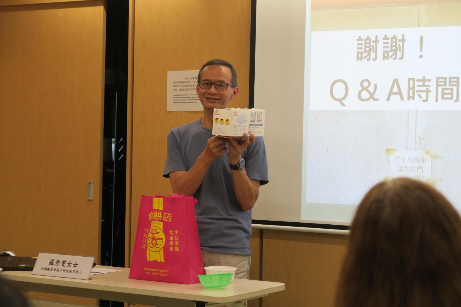 燕子組召集人Lawman偕同丈夫Lawrence,於5月3日在長洲圖書館,跟市民分享有關家燕的各種資訊。