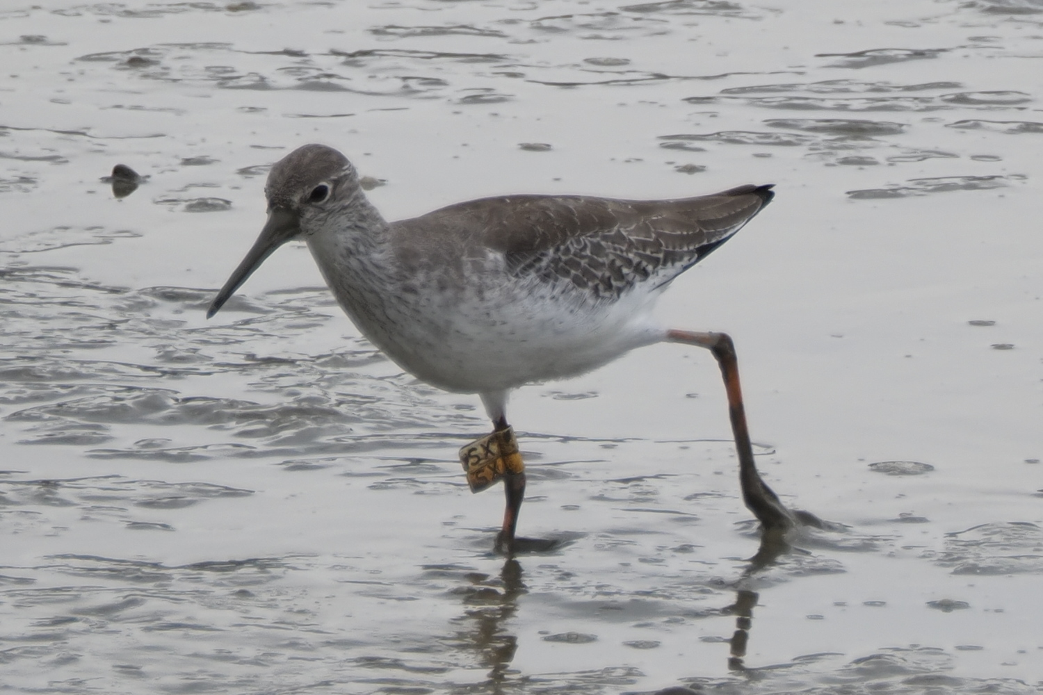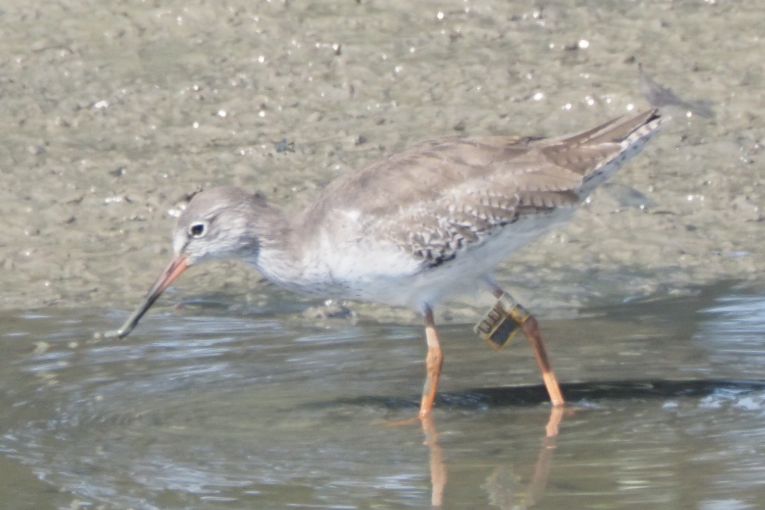 Spotted Redshank N0 was ringed on 14-Apr-22 as adult, this is the 16th sighting, last seen on 2-Mar-25 at Mai Po, 1st sighting of this season.