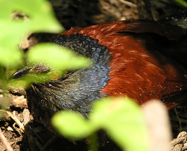 I wished I had the Swarovski STS65HD which focuses to 3 metres as this coucal was right at the edge of the focus of the STS80HD scope (6 metres). Neil.