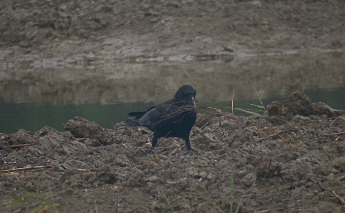 Large-billed Crows collecting nesting materials at Mai Po
