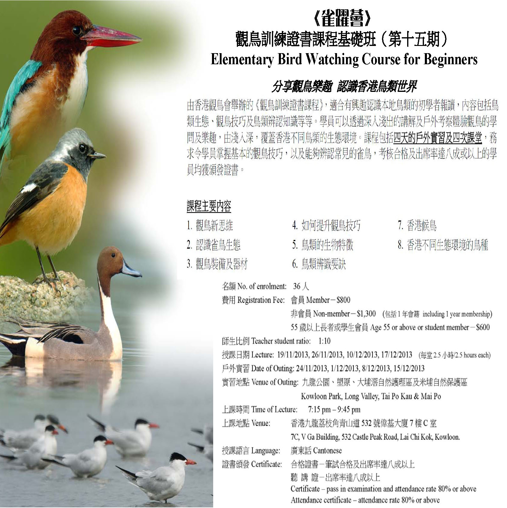 《雀躍薈》觀鳥訓練證書課程基礎班(第十五期) 15th Elementary Bird Watching Course for Beginners