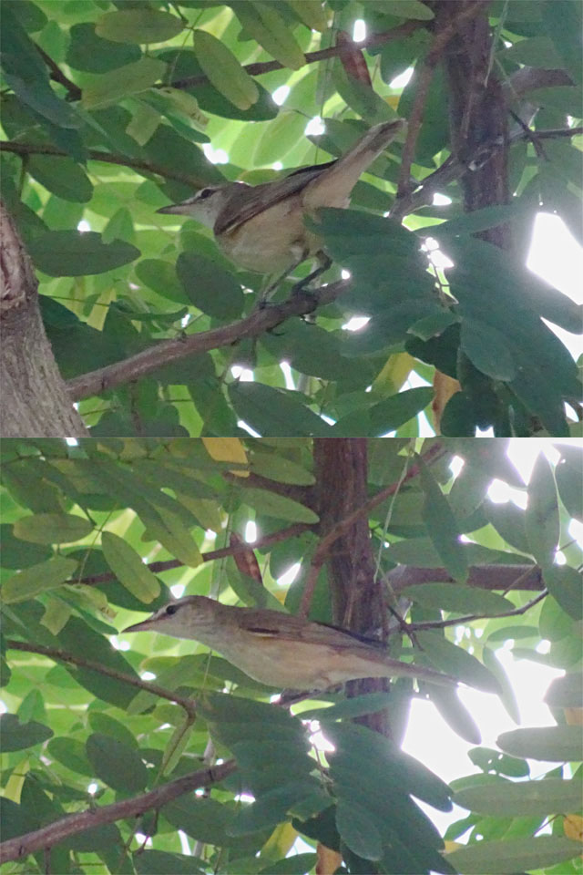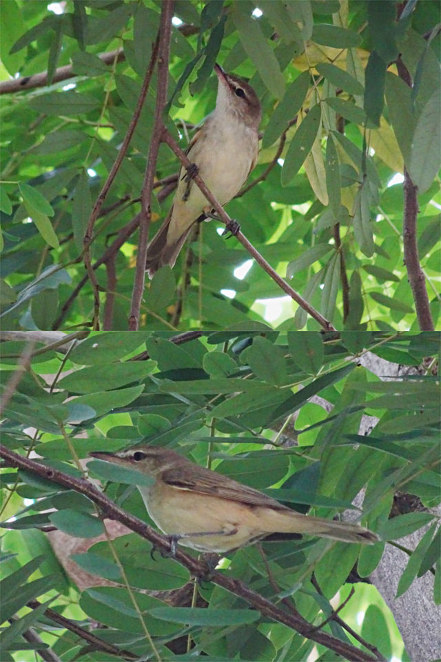 It's an Oriental Reed Warbler. Quite a good record from this urban location.