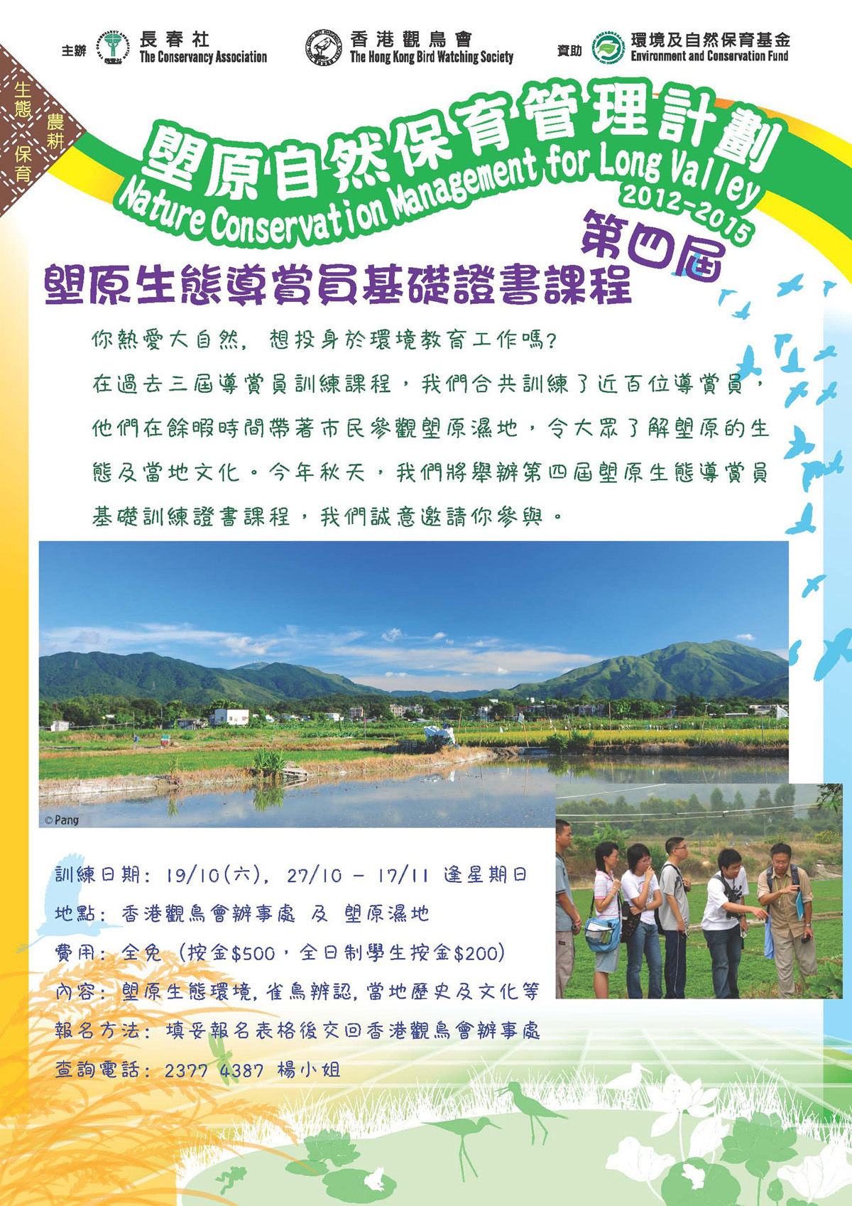 日期(訓練):2013年10月19 (星期六)、27日 及 11月3及10日 (星期日)