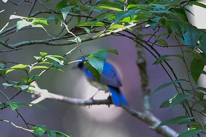 Sorry that these are already the best pictures, I guess this is a Chinese Blue Flycatcher/Hill Blue Flycatcher, also little bit look like a male Red flanked Bluetail. Any body can help to identify?