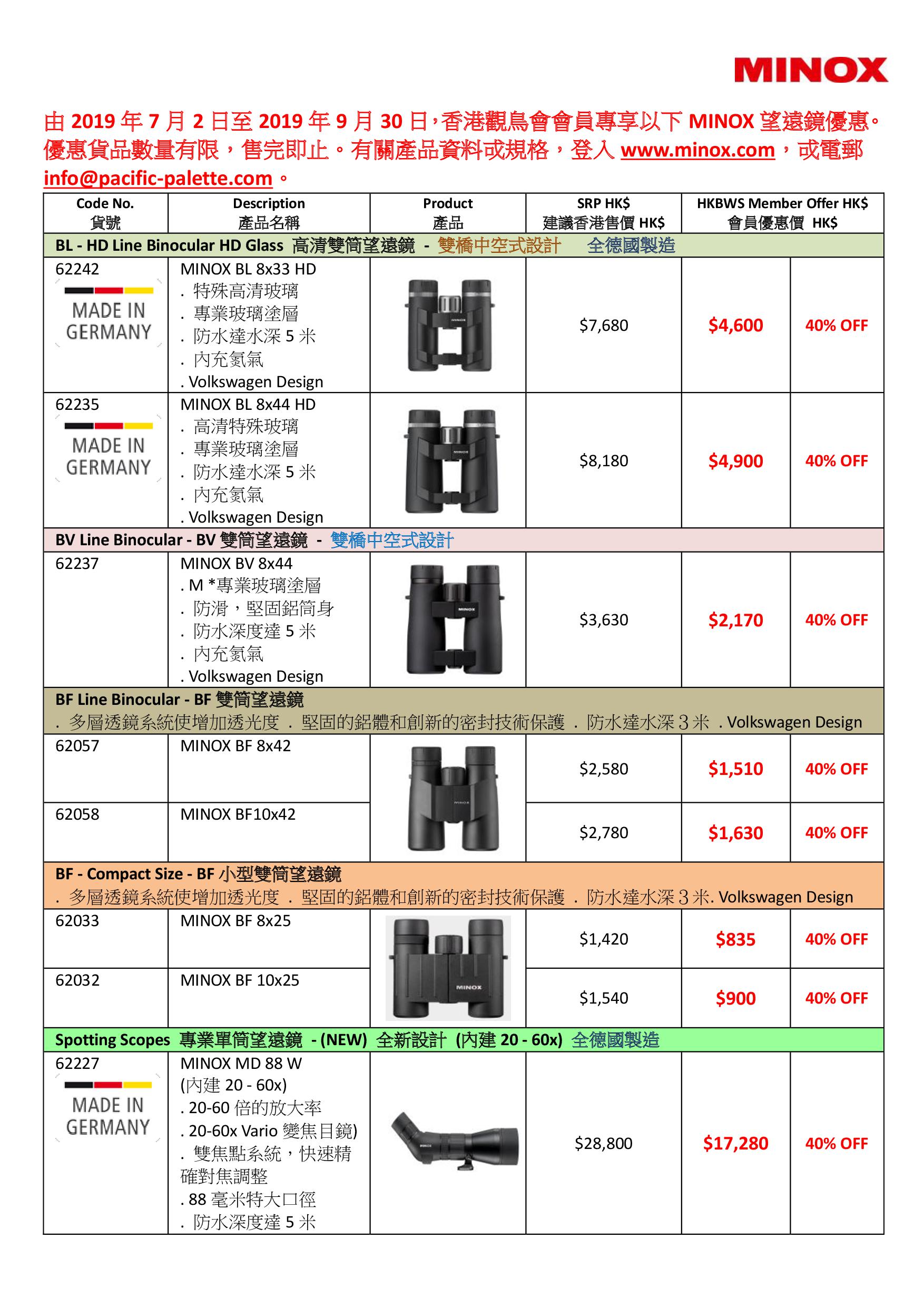 MINOX望遠鏡優惠 Special Offer of MINOX Binoculars 2019/07-09