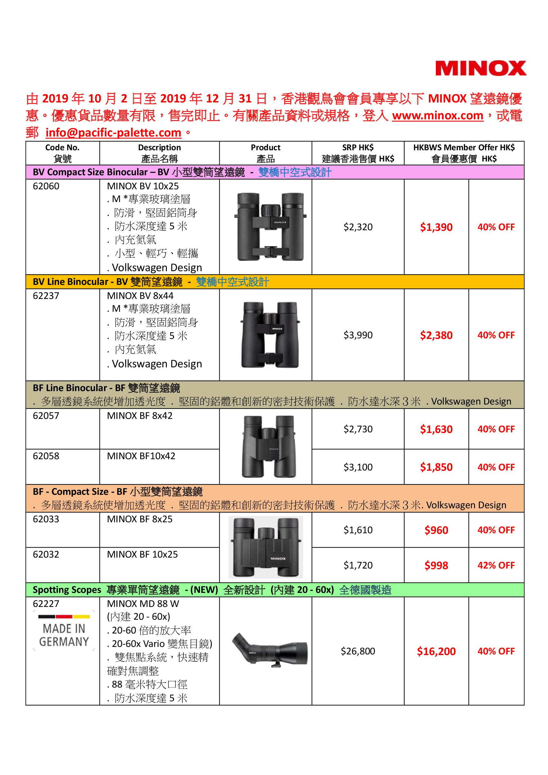 MINOX望遠鏡優惠 ~ 2019年 10月 至 12月 Special Offer of MINOX Binoculars ~ Oct to Dec 2019