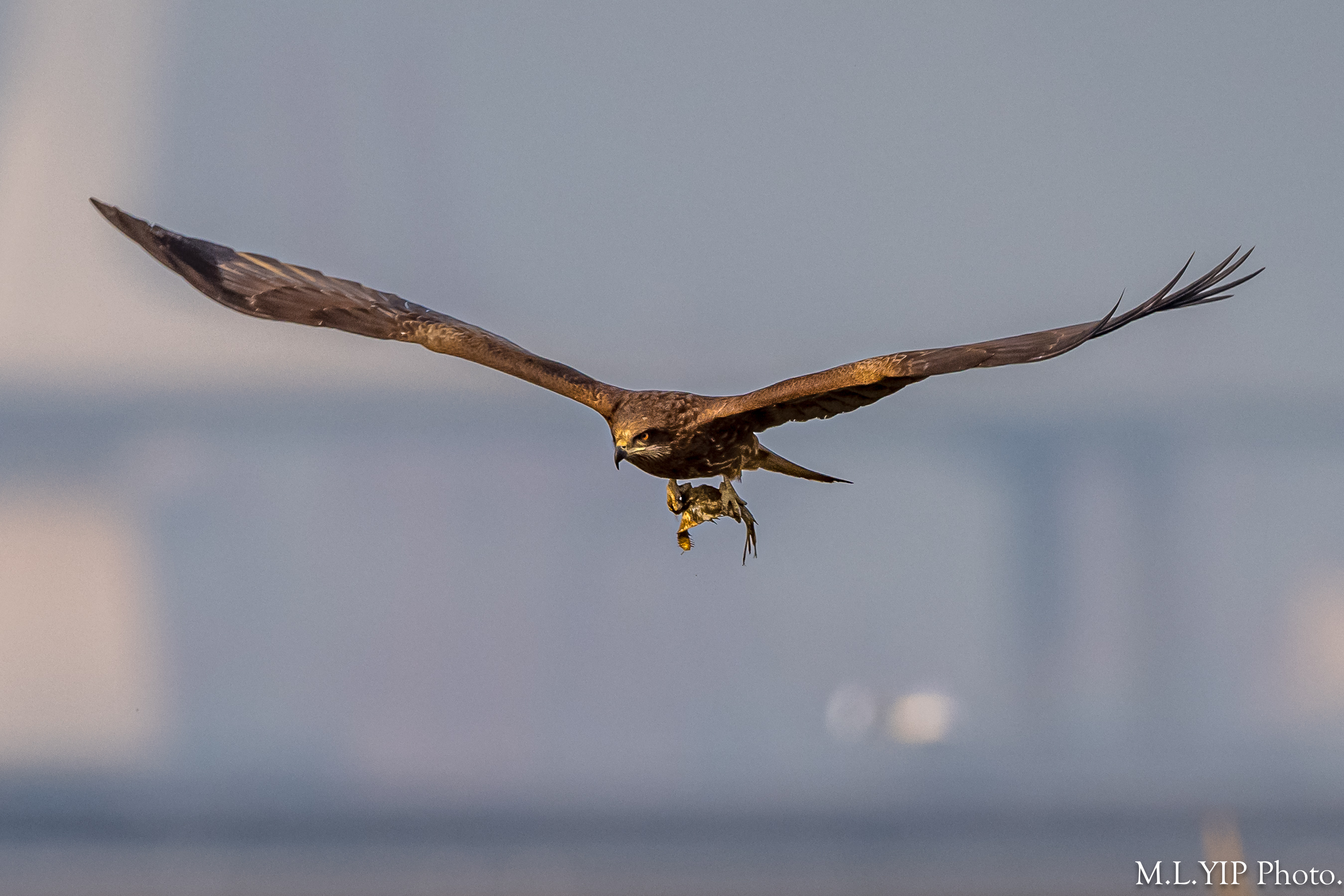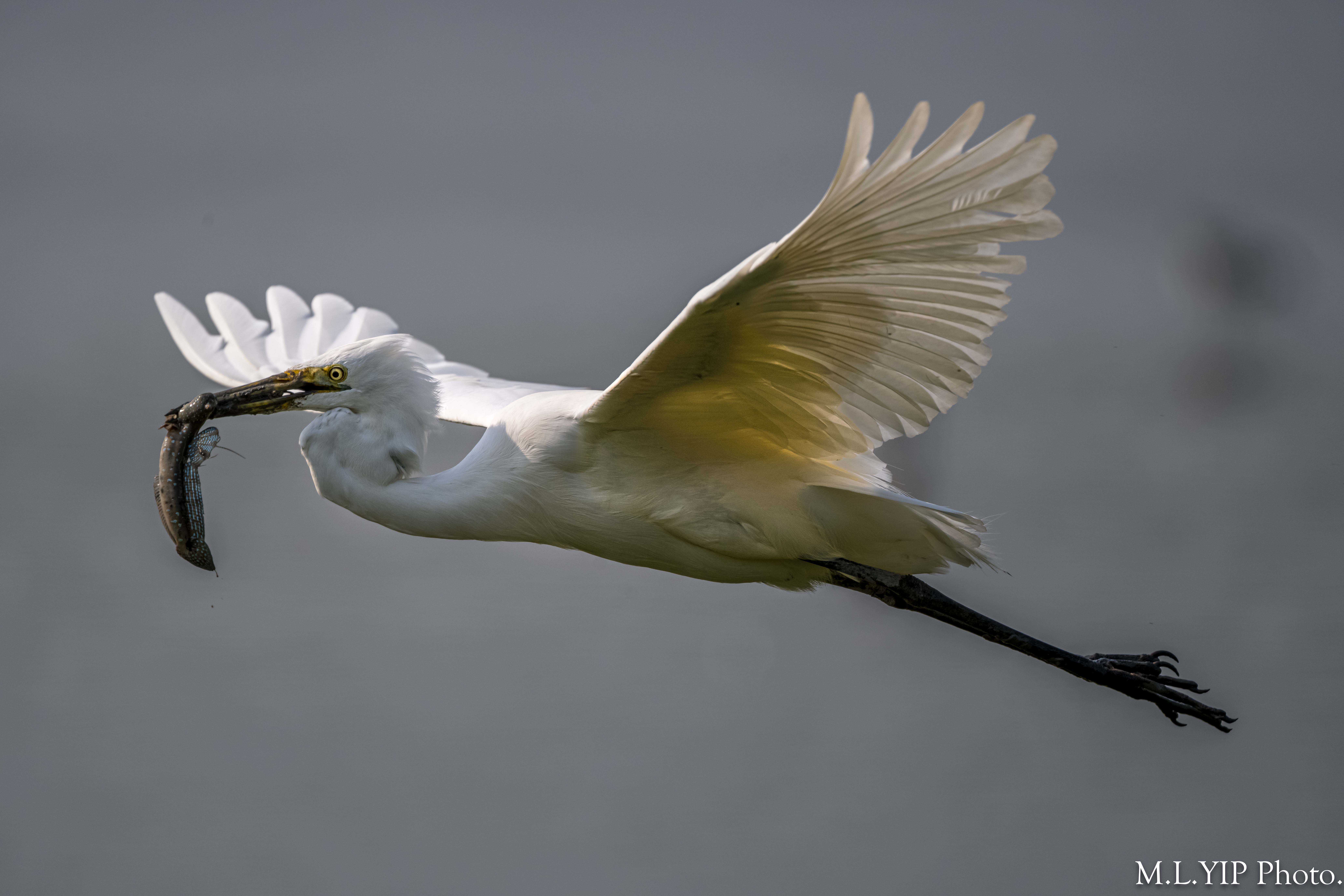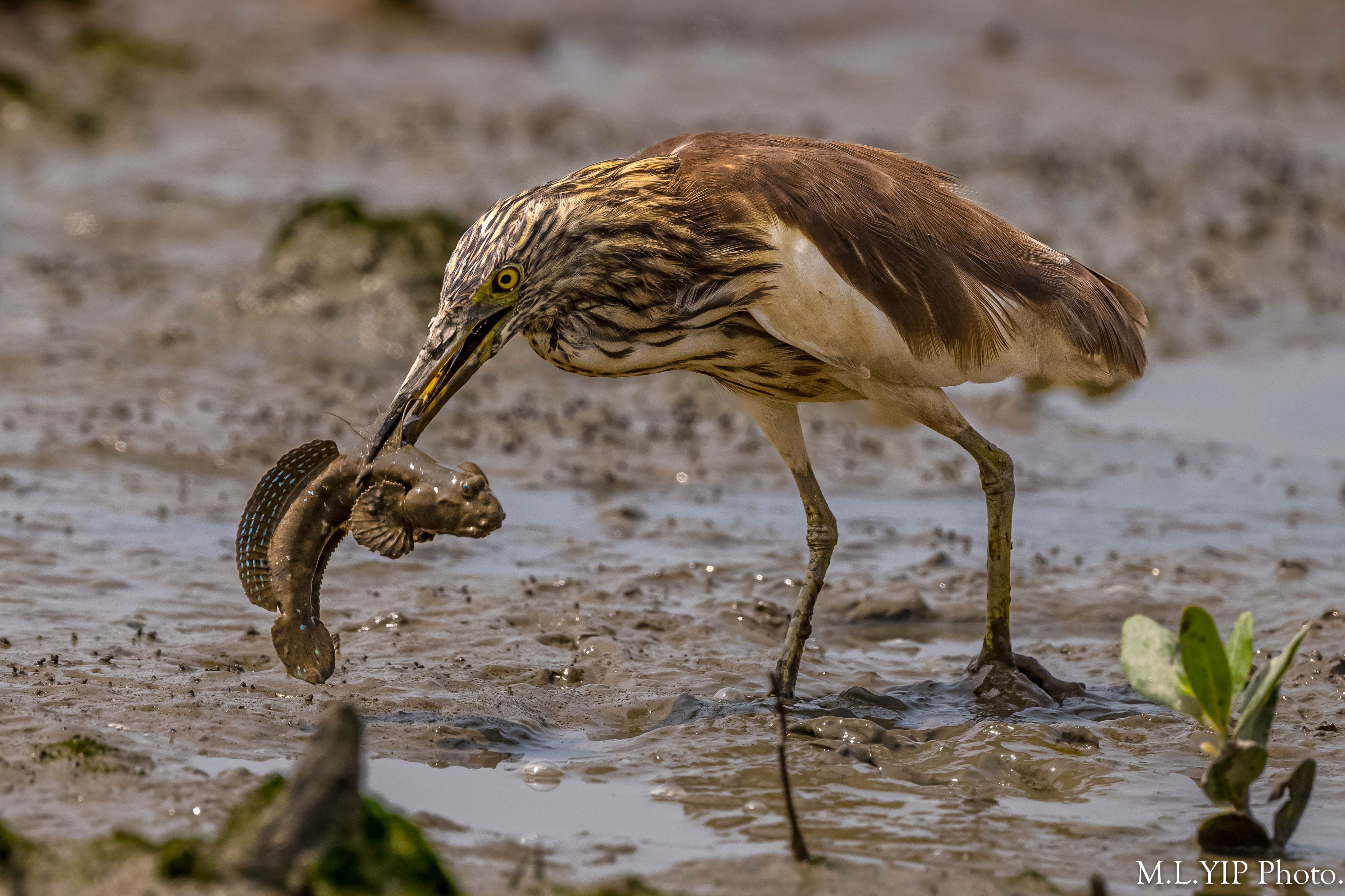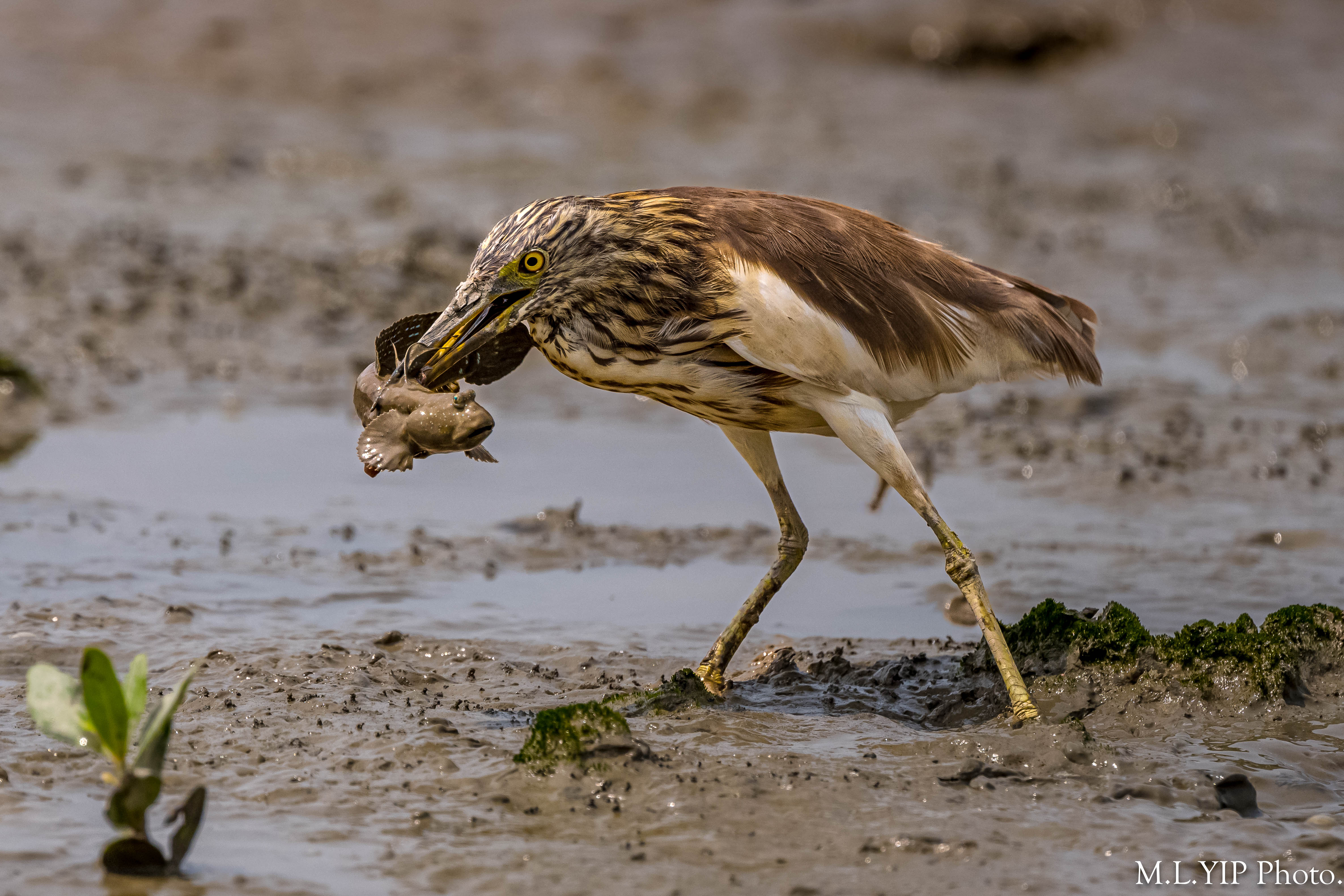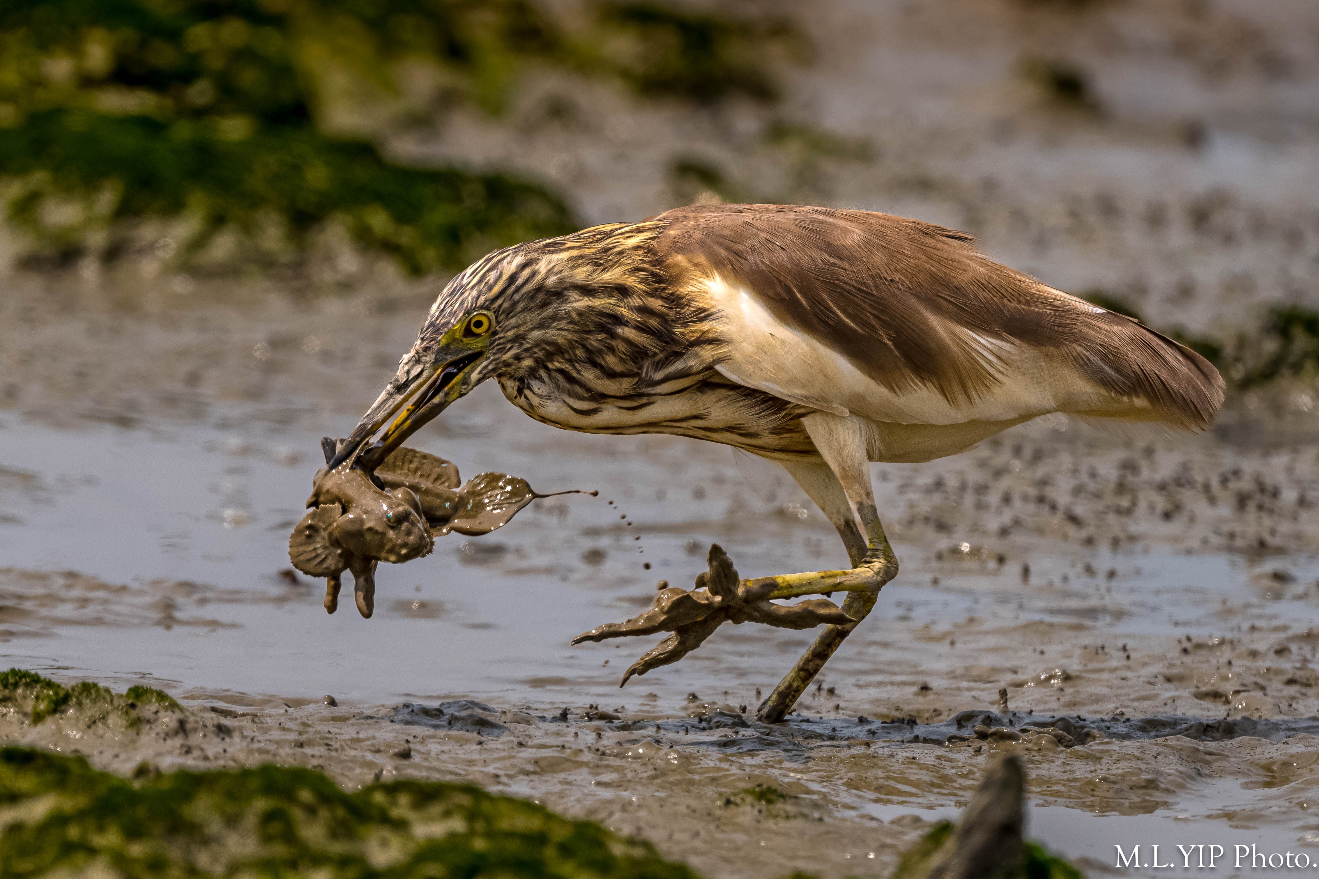 黑鳶在泥灘撿到一尾死魚.