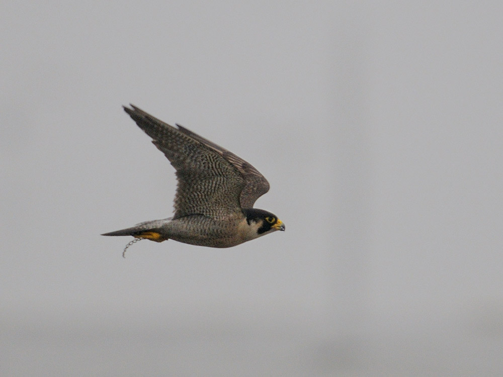 I saw this bird last October at Long Valley--with exactly the same chain. I suspect it is an escaped falconers bird.