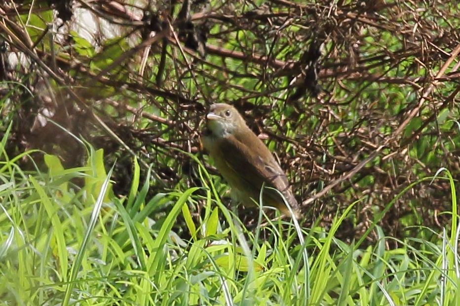Looks like a Thick-billed Warbler losing its tail.