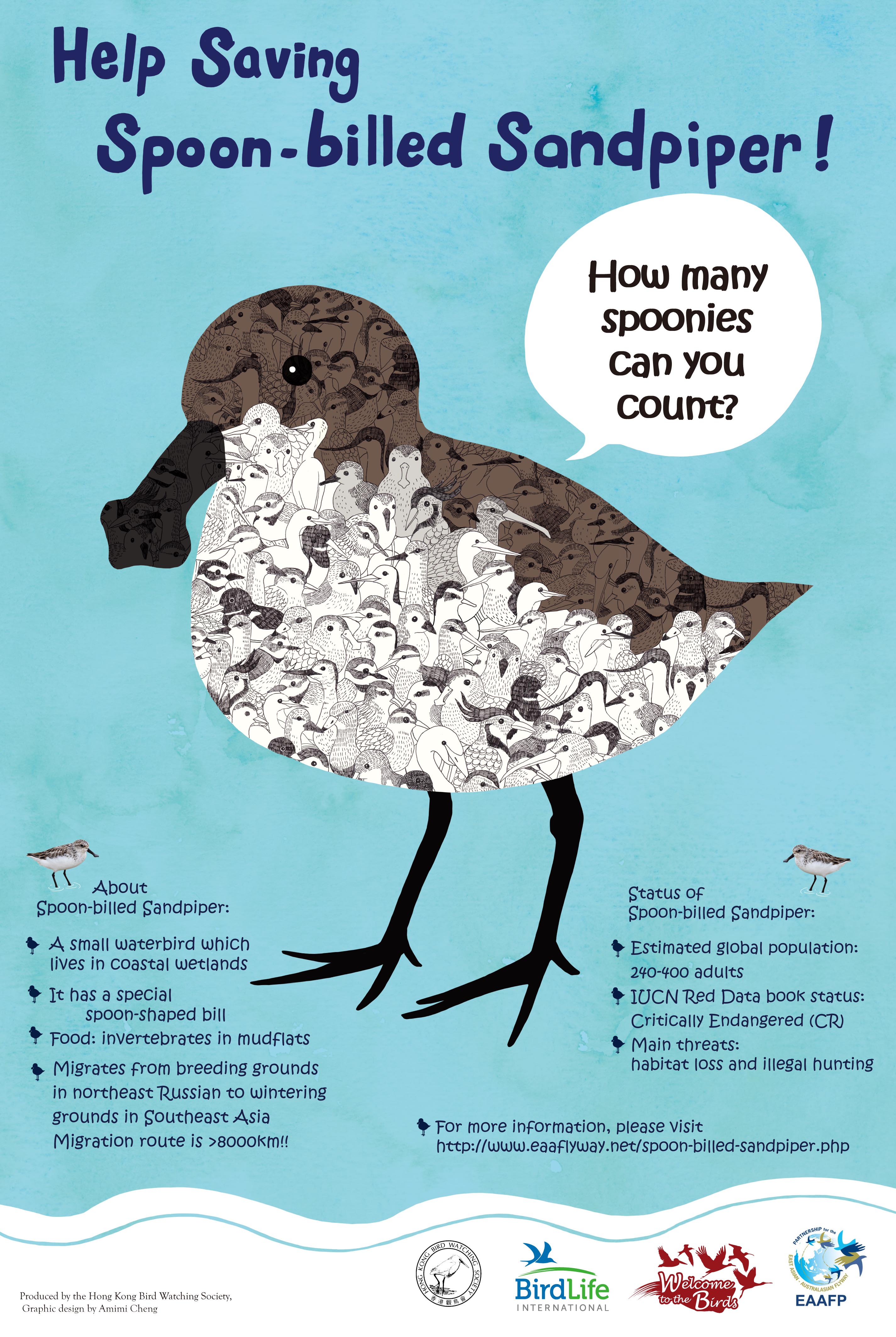 To get ready for the mid-winter Spoon-billed Sandpiper Census, let's practice with the poster !! How many spoonies can you count? (Answer will be provided after the Census)