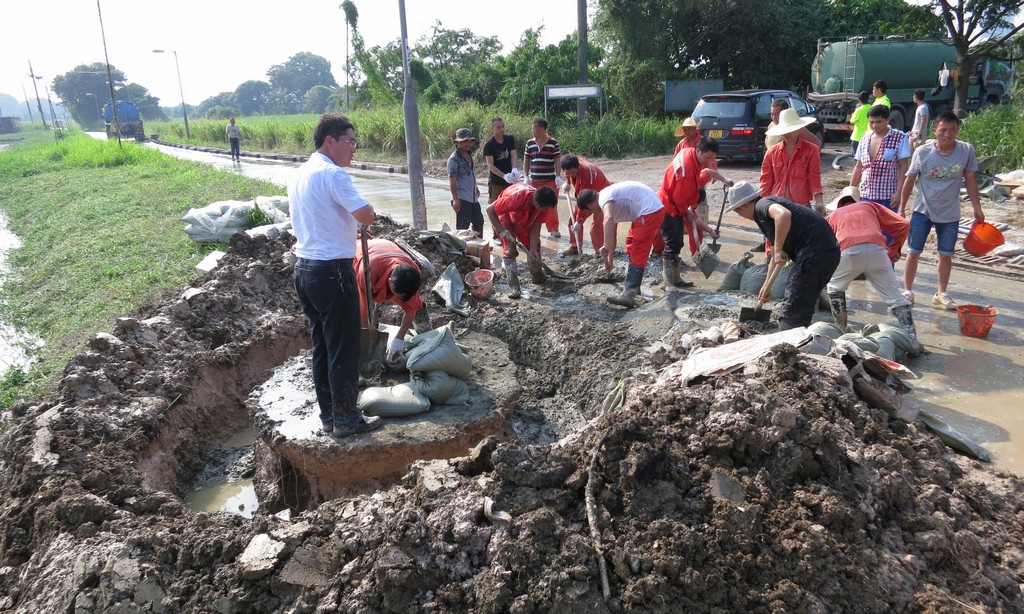 The hole which was overflowing with mud was sealed with concrete and sandbag (photograph taken on 8 August)