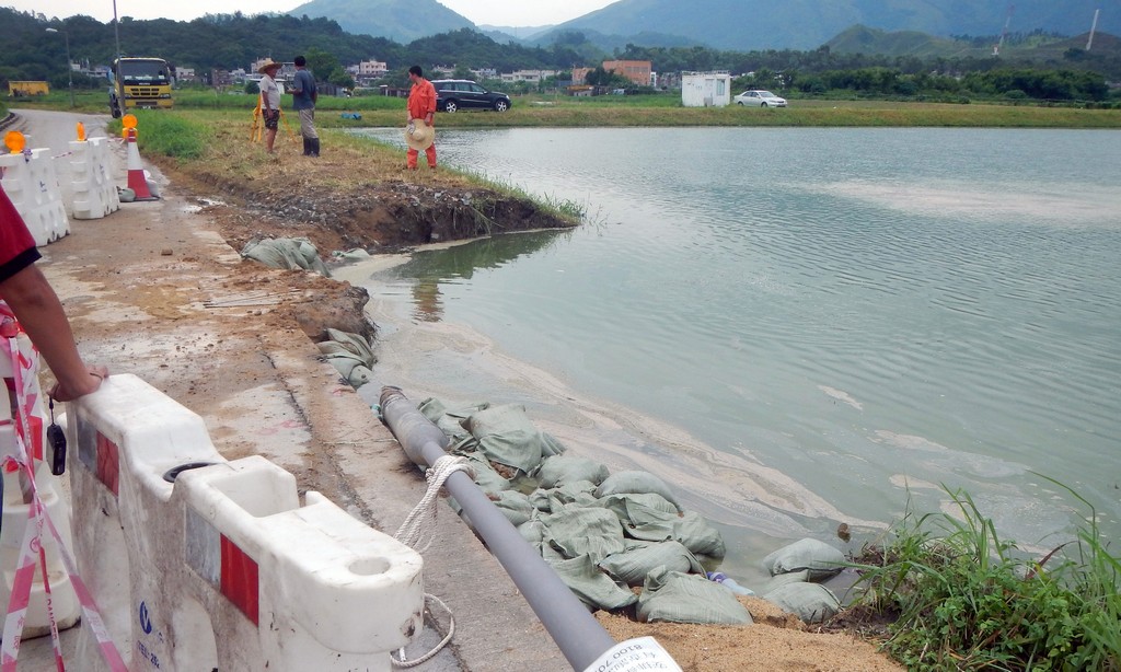 [Hong Kong] 担竿洲路魚塘塘壆倒塌事件 Collapse of fishpond bund at Tam Kon Chau