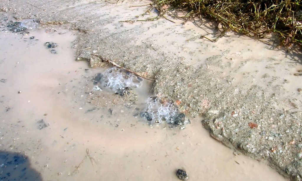 從担竿洲路上的裂縫冒出的氣泡(攝於8月7日)