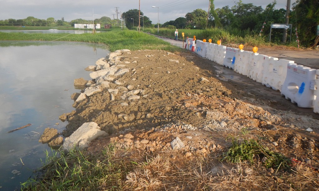 The gap created by the collapsed fishpond bund is now filled (photograph taken on 13 August)