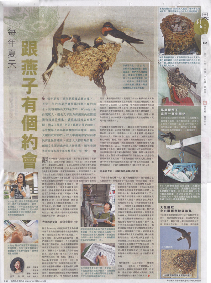 蘋果日報訪問 : 每年夏天, 跟燕子有個約會