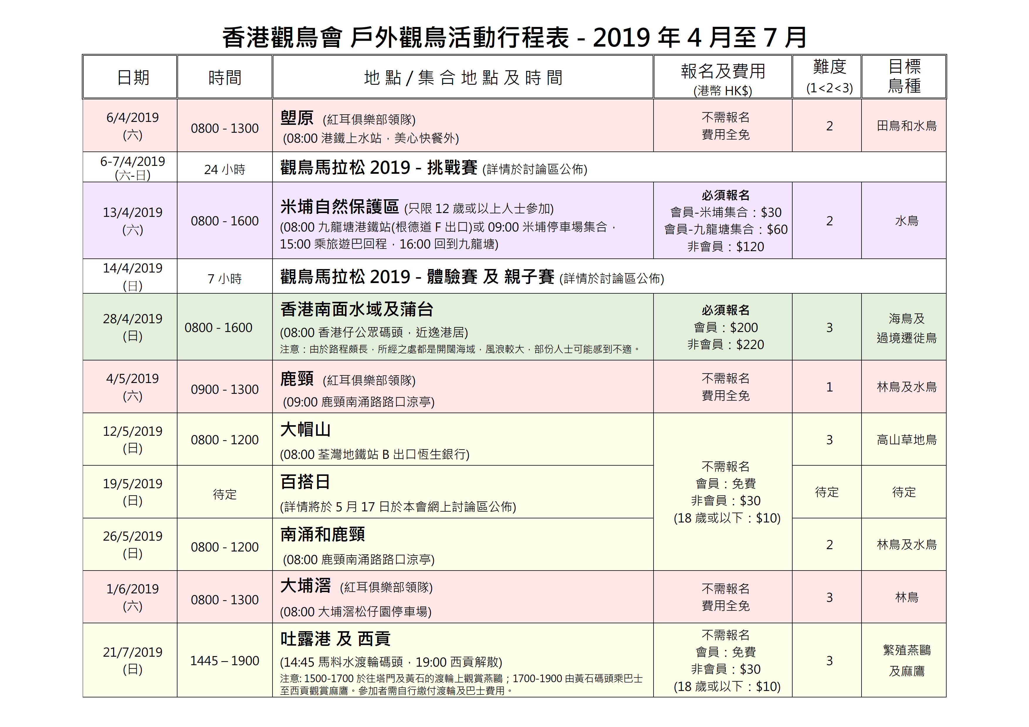 There will be a bird watching activity on 6 Apr. The gathering point is the area outside the Msxism' MX, Sheung Shui MTR station in the 1st floor. As there is some renovation work being taken place, hoardings are erected surrounding the Msxism' MX. Please note that in order to avoid any confusion, the gathering point will remain the same.