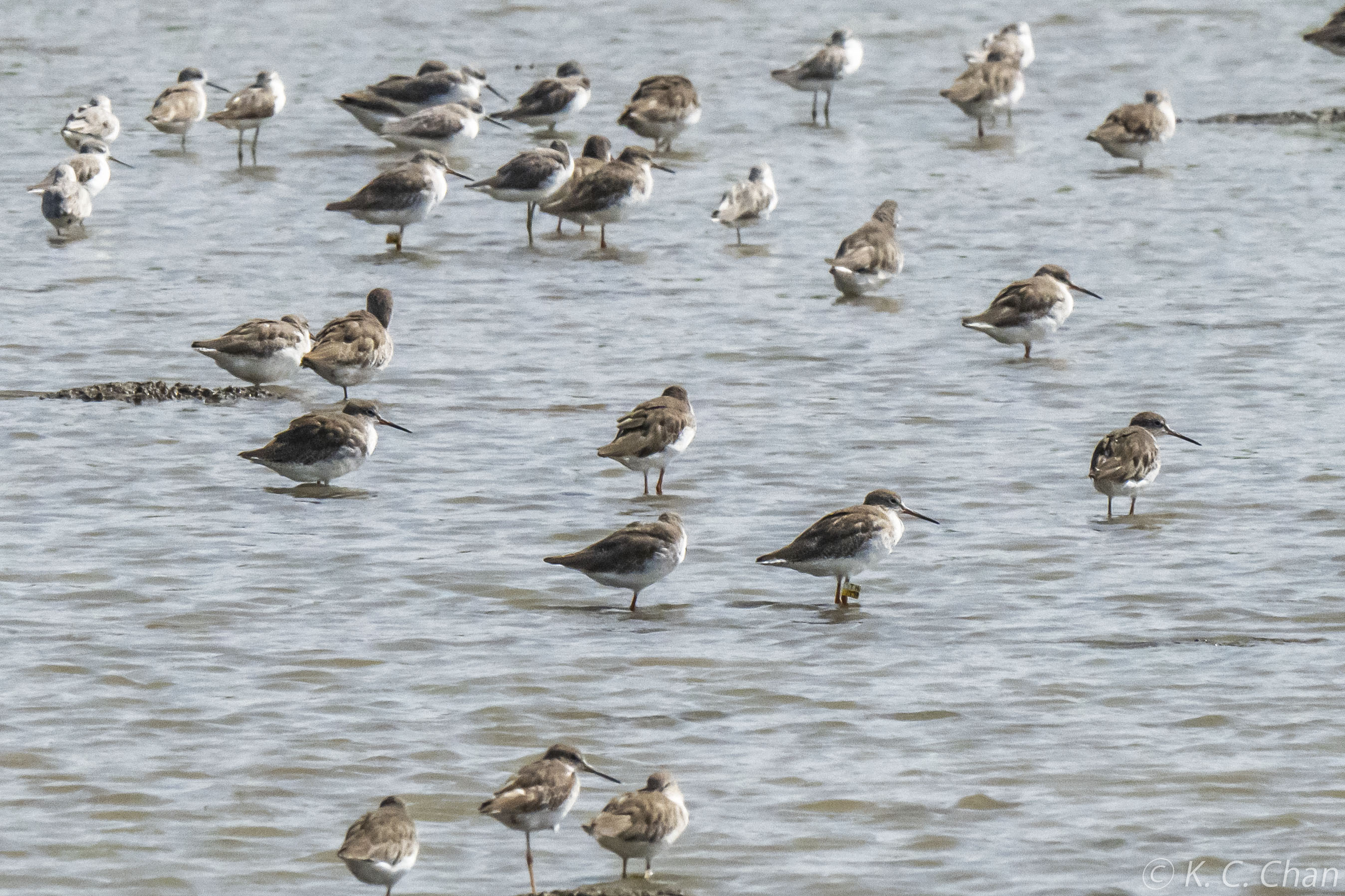 TJ was ringed on 26-Nov-2022 as a 1st year bird. This is the 10th sighting. Previously recorded at Mai Po and Tsim Bei Tsui in Dec-22, Jan-23, May-23, Aug-23, Nov-23, Feb-24 and Mar-24. This is the 1st report of this season.
