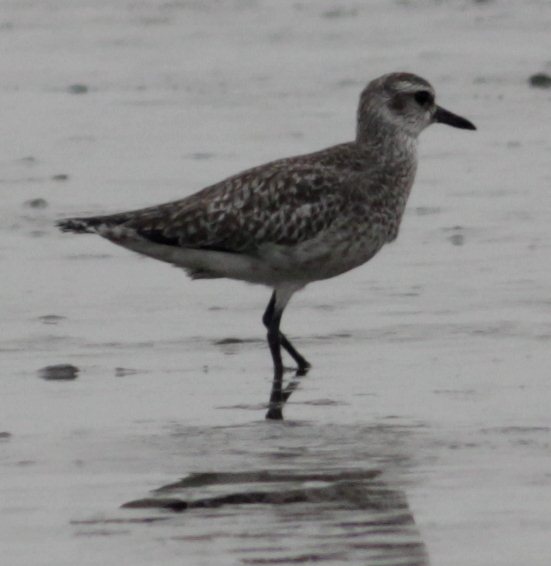 Yes, a Grey Plover. Grey plumage with a short, heavy bill and large, black eye.