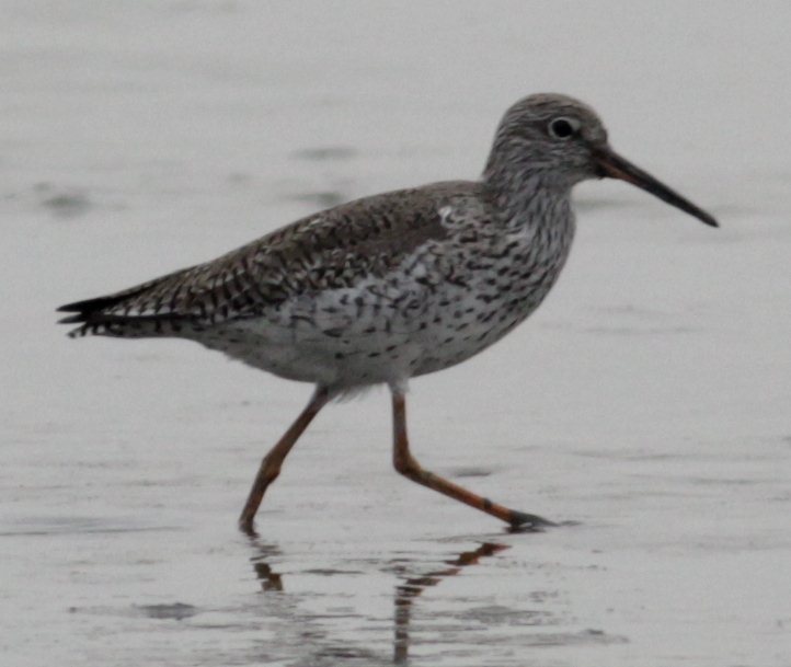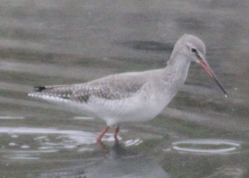 In fact this one is a Common Redshank. The bright red legs and red base to the bill rule out anything apart from a redshank. The brown upperparts and streaked/spotted head and neck fit Common. (Most Spotted Redshank are now also developing breeding plumage, so look black or at least with some blackish feathers)