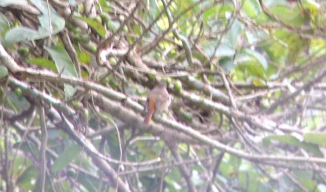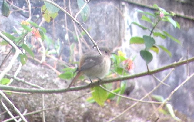 Having just seen one female Daurian Redstart with the usual white wing patch, this one flew in front of me and perched. There was no clear white, only what looked like a wing bar. The rump was bright and the rufous extended well up the back. Is it just an unusual Daurian female? Images with phone and binoculars, very cropped.