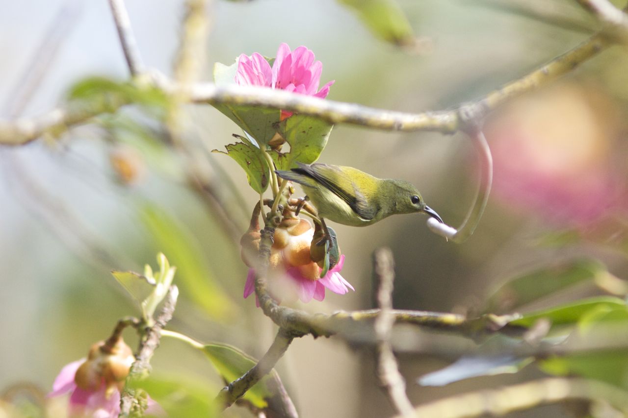 Another shot taken today. Took a few, but only this one seemed OK. This male is enjoying the nectar of Rhodoleia championi flower (紅花荷)