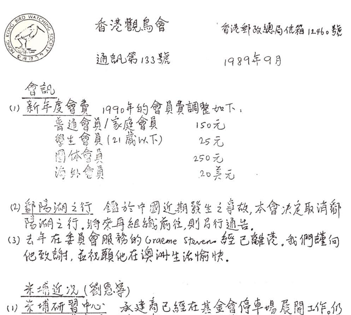 香港觀鳥會早期通訊 Previous bulletin of HKBWS