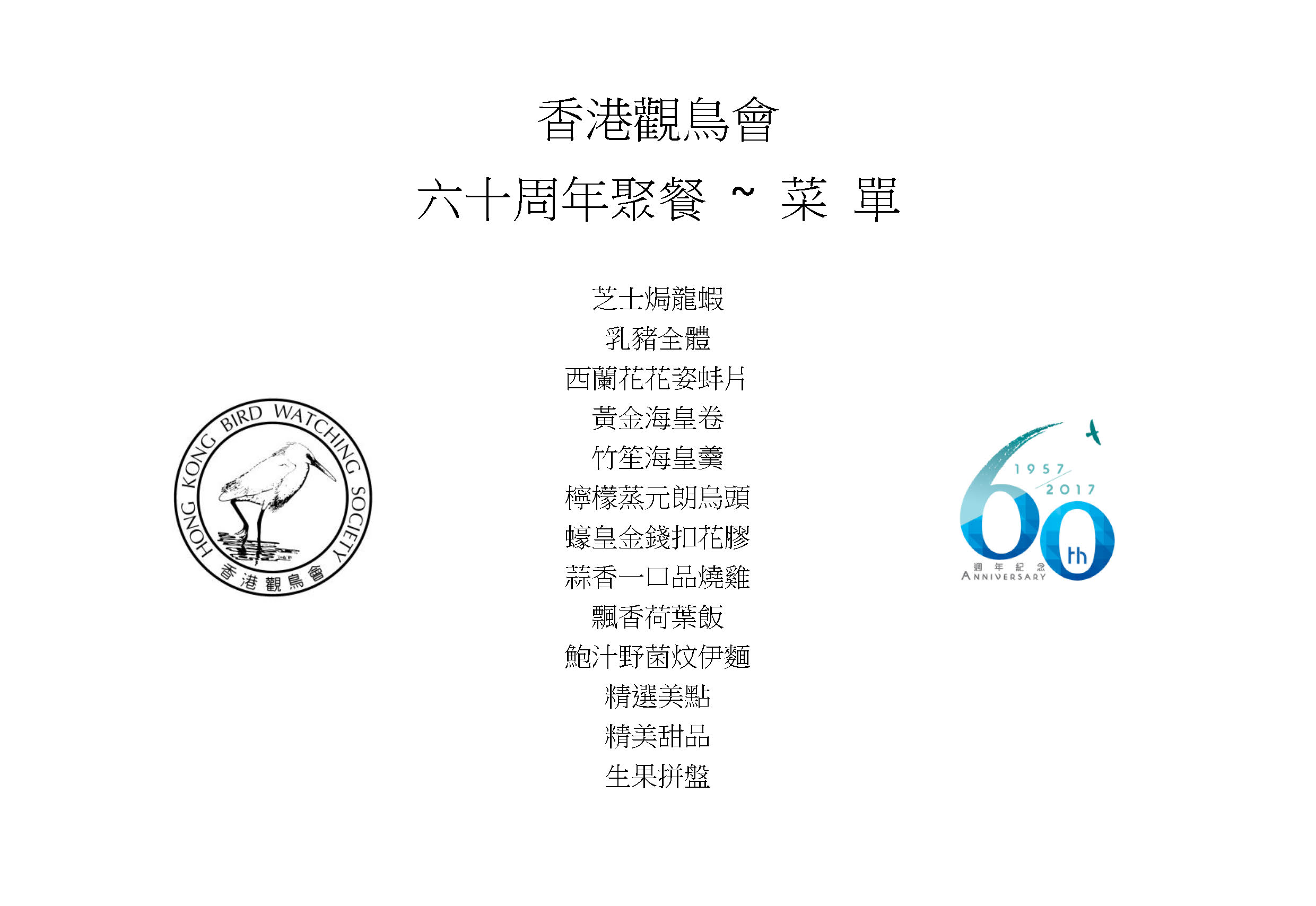 (滿額 Full) 60週年聚餐 60th Anniversary Dinner Celebration